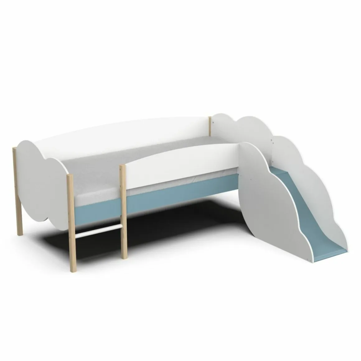 Het Longane Bed met Glijbaan voegt een vleugje fantasie en plezier toe aan elke kinderkamer. Met het unieke wolkenthema creƫer je een dromerige slaapomgeving waarin je kindje heerlijk tot rust kan komen. De zachte uitstraling van het bed past perfect in iedere speelse of rustgevende inrichting.
