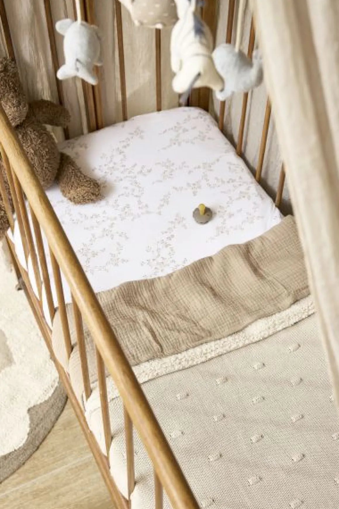 Gebruik het Meyco Baby Knots Ledikant Deken in combinatie met een laken om het wassen van de deken te verminderen. Dit lakentje heeft een TOG-waarde van 2.0, wat aangeeft dat het een lichte isolatie biedt. Hoe hoger de TOG-waarde, hoe warmer het product voor jouw kleintje.