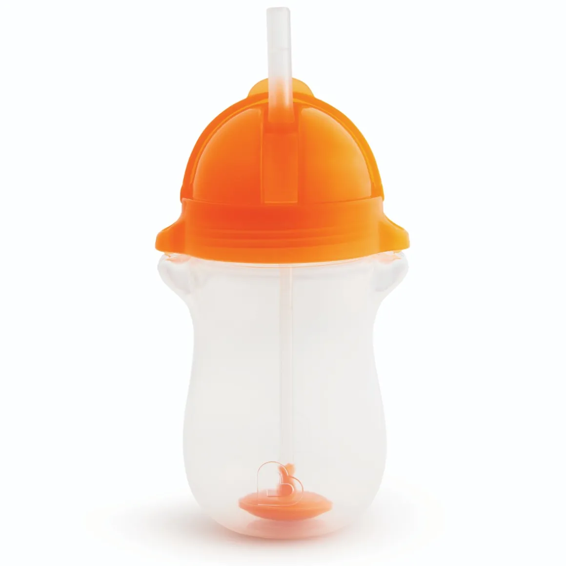 Wil je een beker waaruit je kindje zelfstandig kan drinken? Dan is de Munchkin Drinkbeker Met Rietje Click Lock Oranje ideaal!