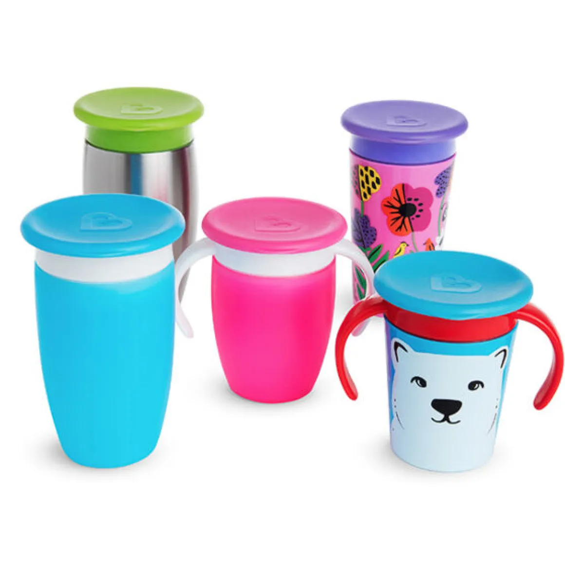 Is de Miracle 360 graden beker rand van jouw kleine een beetje vies? Daar heeft Munckin aan gedacht. Deze 4 deksels zijn eenvoudig te bevestigen op alle Munchkin Miracle 360 graden bekers. Op deze manier is de beker altijd goed beschermd tegen vuiligheid.