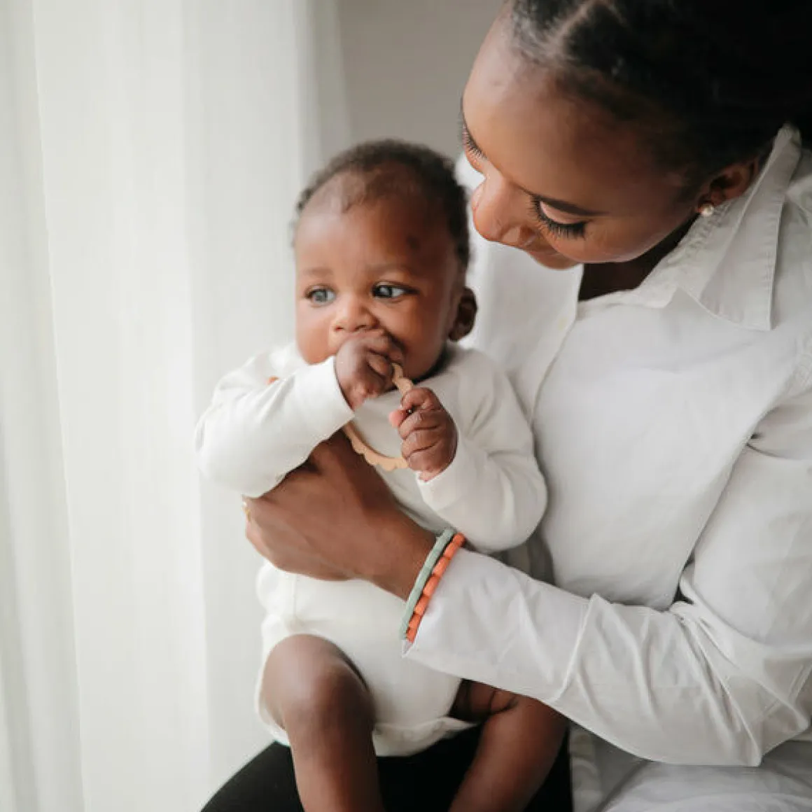 Komen de eerste tandjes van je kindje door? Mushie to the rescue! Deze toffe bijtring armbanden hebben een fijne ribbelvorm die het tandvlees van je kindje verzacht bij het bijten. Gemaakt van 100% non-toxic silliconen.