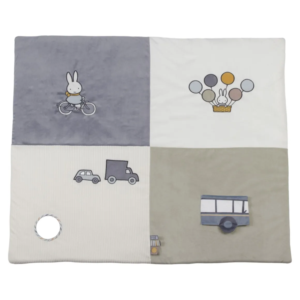 Het Nijntje Boxkleed Fluffy blue is het ideale kleed voor in de box of als speelkleed op de grond. Aan het kleed zitten verschillende labels om aan te voelen, ook is er een spiegeltje en wat knisperpapier. Er zijn genoeg activiteiten voor jouw kleintje. Het Nijntje Boxkleed prikkelt de zintuigen van je kindje enorm.