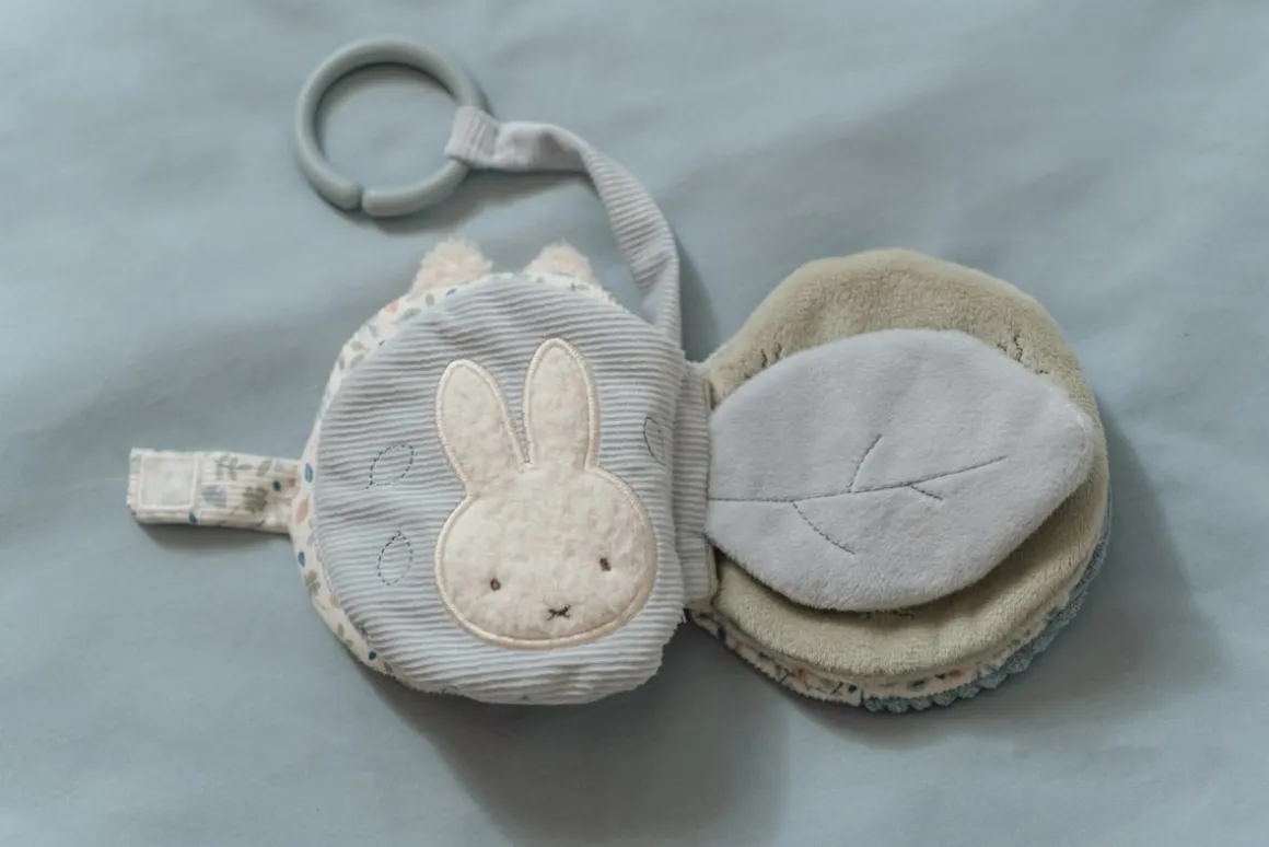 Vermaak je kindje tijdens iedere wandeling met het Nijntje Buggyboekje Lucky Leaves! Het zachte stoffen boekje zit boordevol speelse elementen, zoals verschillende texturen, labeltjes en een knisperend geluid, die de zintuigen en fijne motoriek van je baby stimuleren.