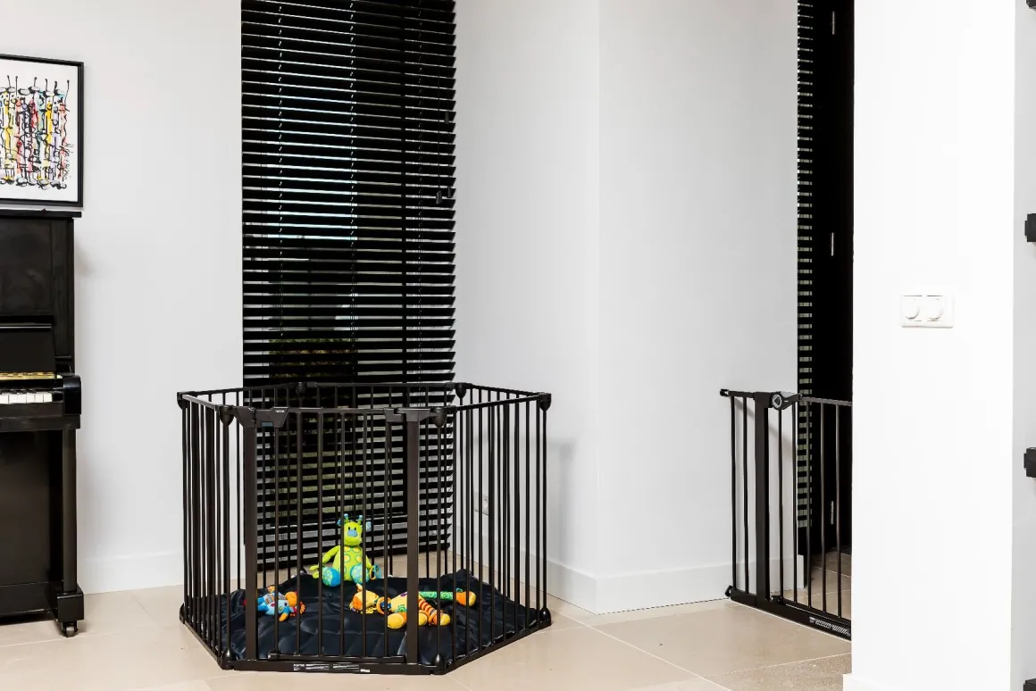 Dit mooie, zwart metalen traphek van Noma is extra groot en dus ideaal voor grotere / bredere ruimtes, als kamerverdeler of rondom de open haard. Bied optimale veiligheid in huis voor jouw kindje!