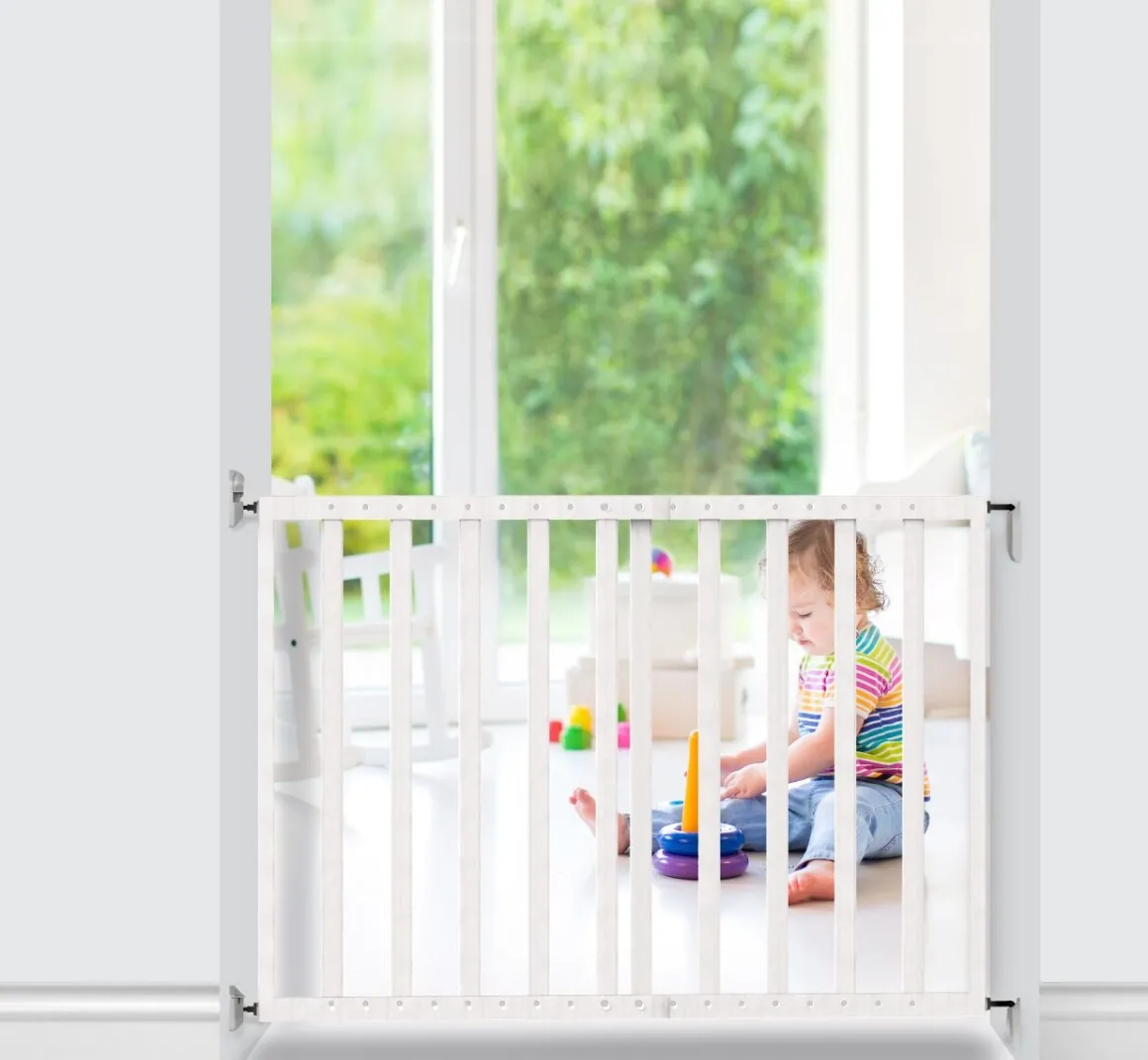 Dit veelzijdige en stijlvolle houten traphek van Noma is ontworpen om openingen van 62 cm tot 100 cm af te sluiten zonder dat je een verlengstuk nodig hebt!