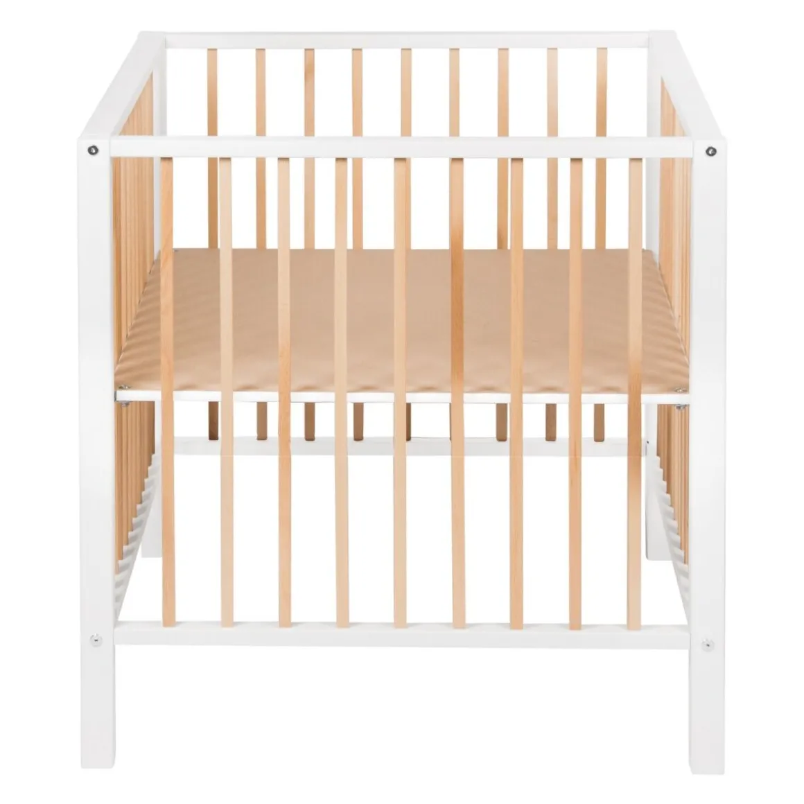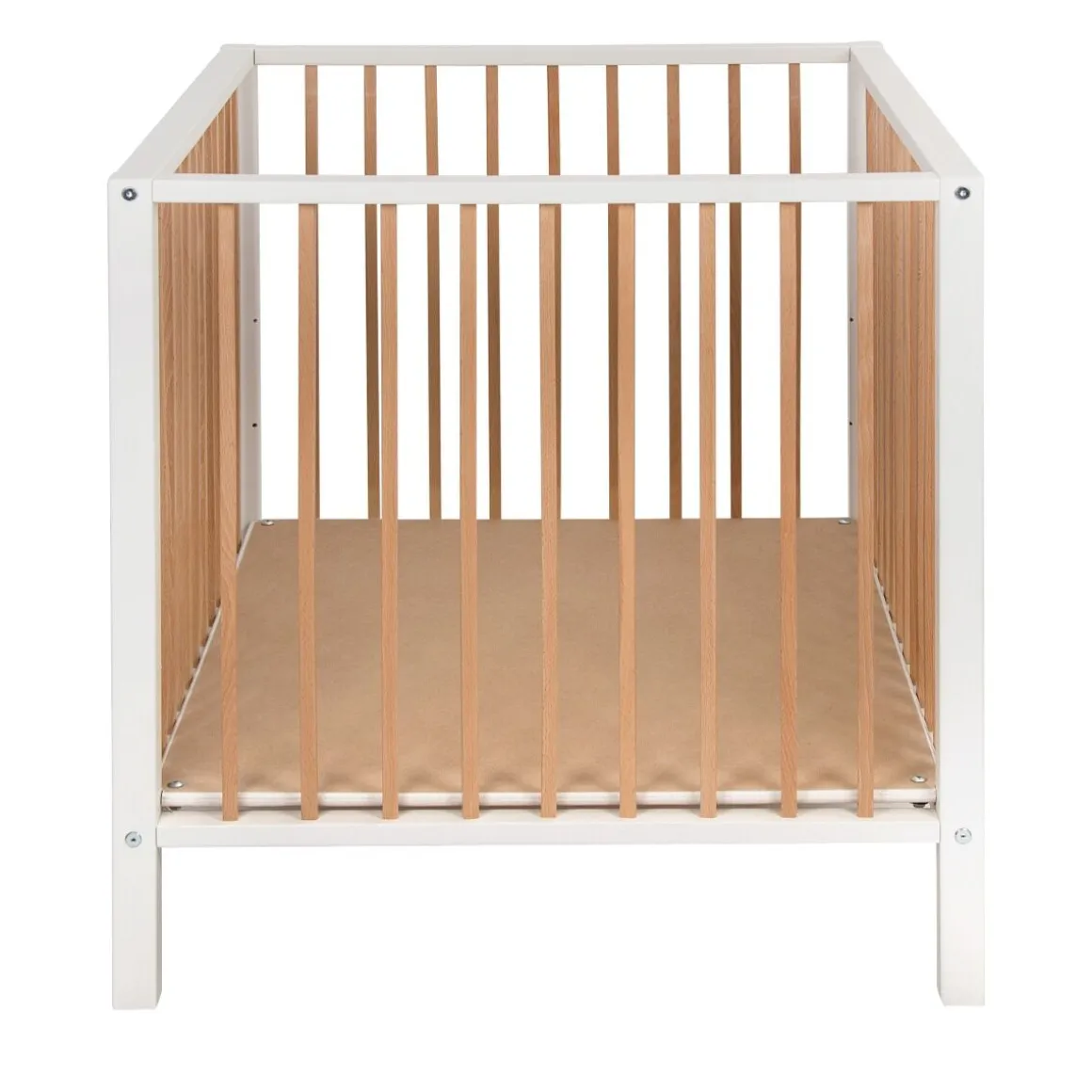 - De Quax babybox Nordic White heeft beuken spijlen en antraciet kleurige accenten