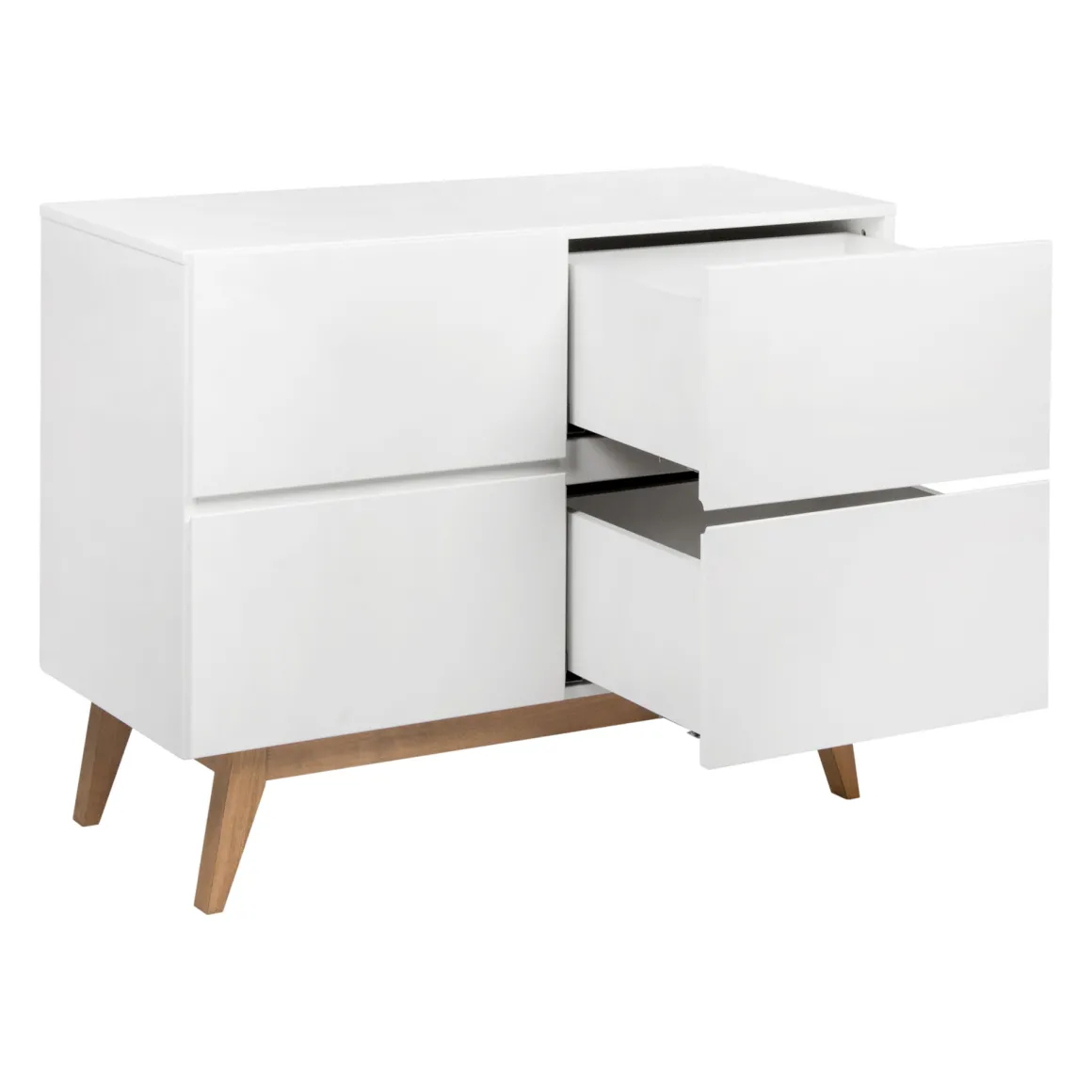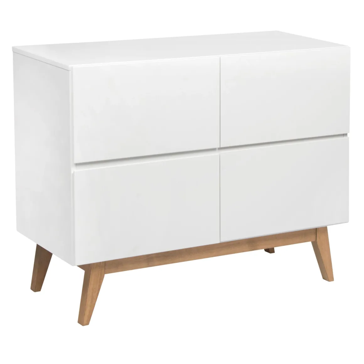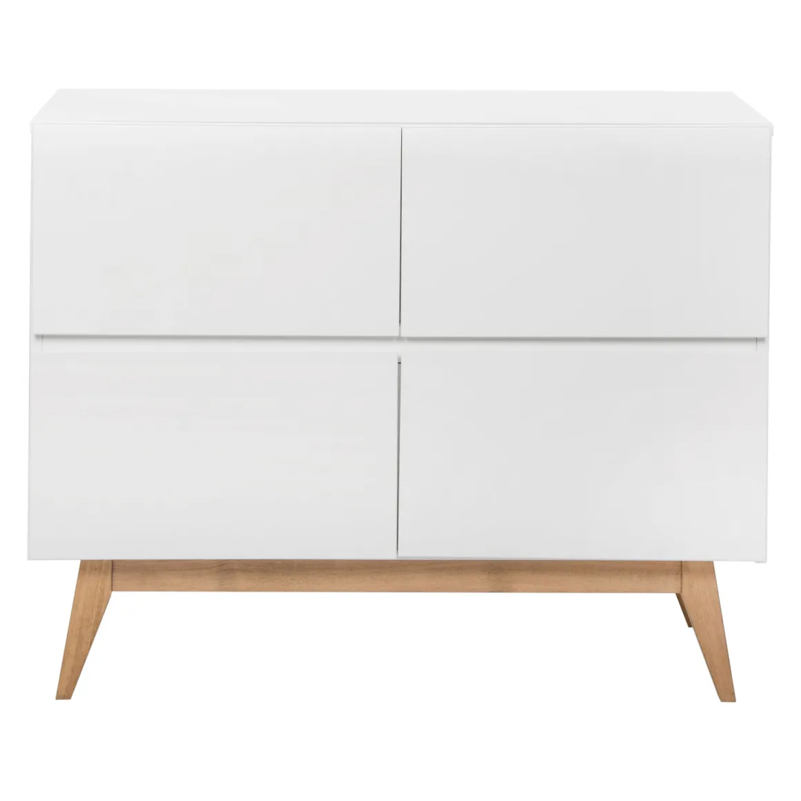 Quax Commode Trendy White straalt pure Scandinavische rust en eenvoud uit. De commode heeft een strakke uitstraling en beschikt over vier greeploze lades met soft-close die een zee aan opbergruimte bieden voor alle verschoningsbenodigdheden en babykleertjes.