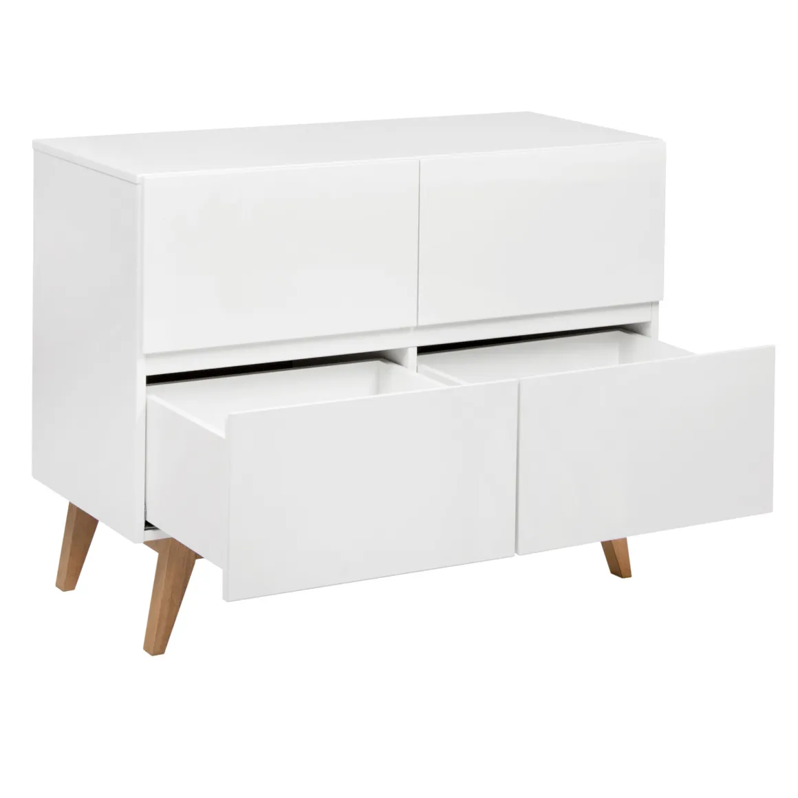 Quax Commode Trendy White is gemaakt van MDF en staat op een onderstel dat gemaakt is van massief beuken. Dit zorgt voor een natuurlijke en extra ruimtelijke uitstraling. De bladvergroter is los verkrijgbaar.