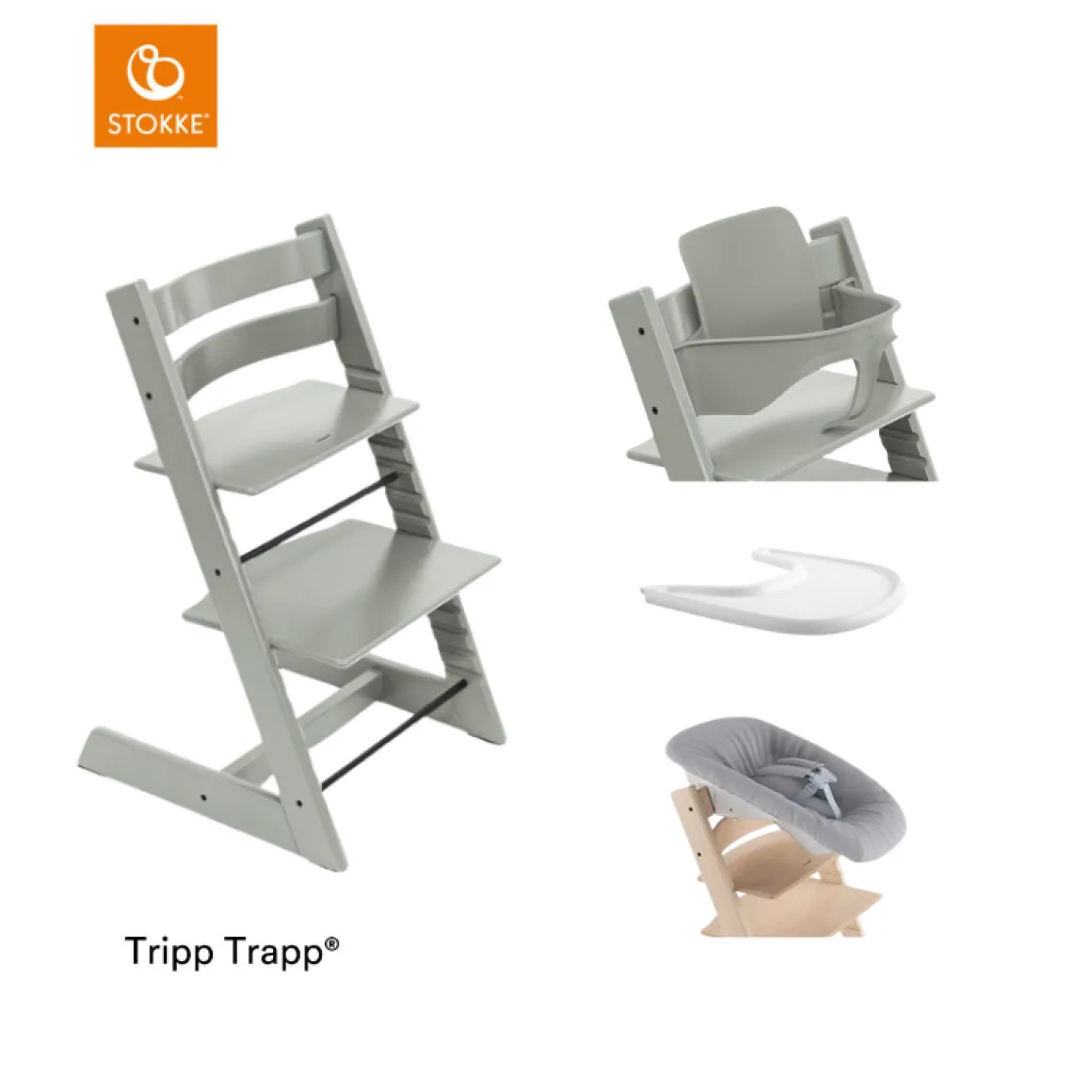 | Model | Stokke® Kinderstoel Tripp Trapp® Glacier Green + Newborn Set™ + Baby Set™ Glacier Green + Tray™ |