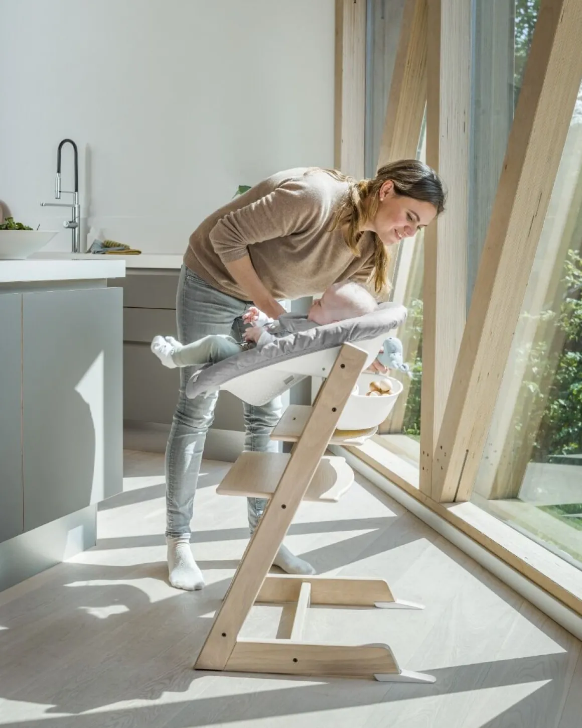 De Stokke® Tripp Trapp® Kinderstoel wordt geleverd inclusief de Newborn Set™️. Met deze set kan je kindje al vanaf de geboorte gebruik maken van de Tripp Trapp®. Met de Newborn Set kan je je kindje gemakkelijk bij jezelf in de buurt neerzetten en kan hij of zij direct meedoen met het gezin.
