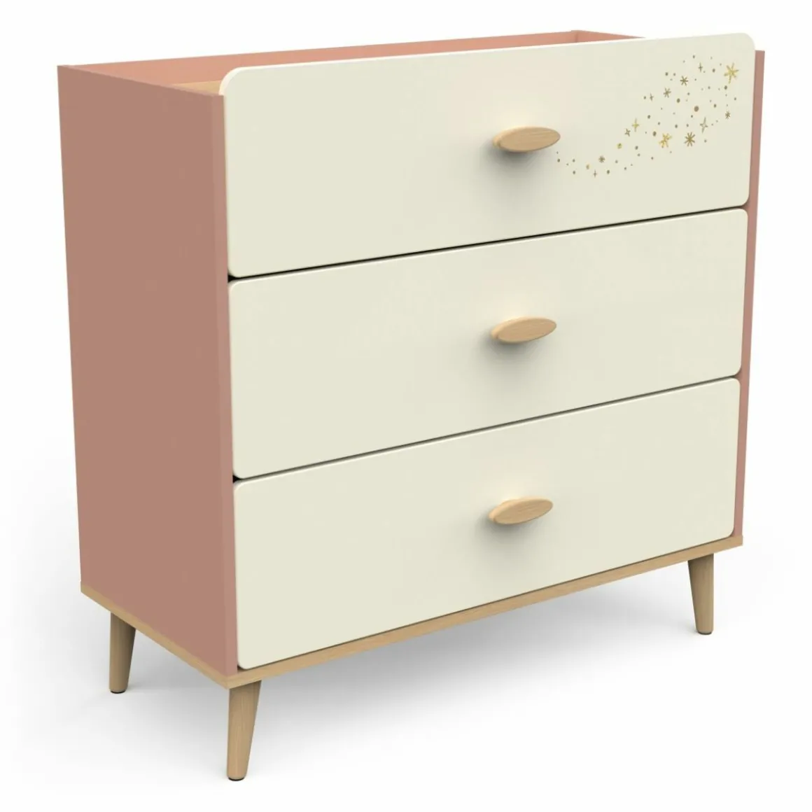 De Suzie ladenkast is niet alleen een praktische keuze, maar ook een stijlvolle toevoeging aan de kinderkamer. Het strakke ontwerp en de subtiele sterrendetails zorgen voor een speelse en moderne uitstraling. Dankzij de compacte afmetingen past deze commode moeiteloos in zowel kleine als ruime kamers, zonder concessies te doen aan functionaliteit.