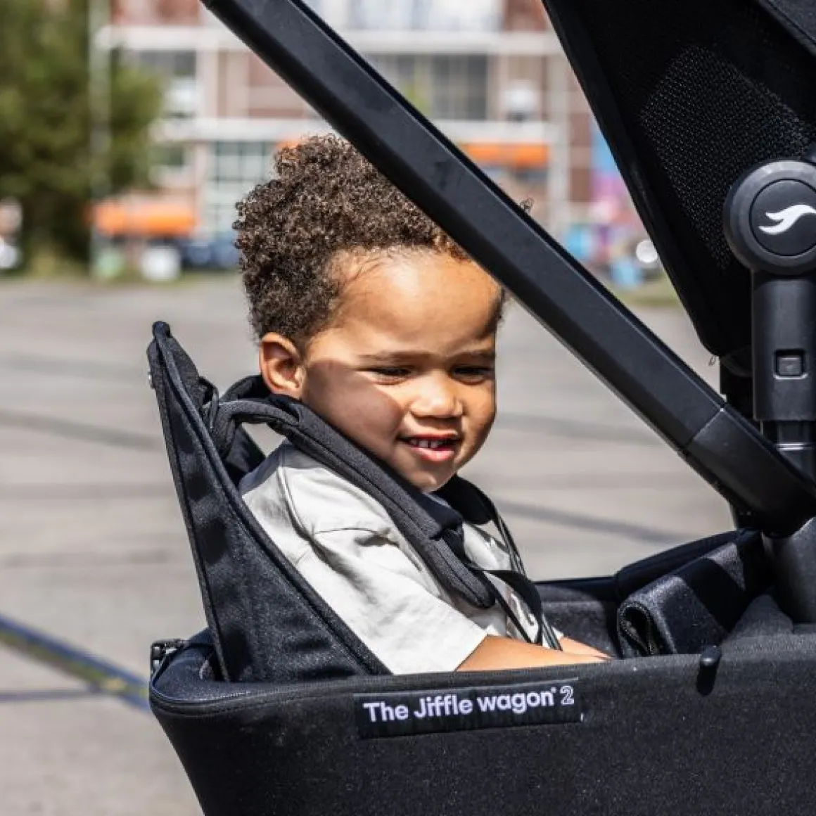 Met het gemak van in- en uitklimmen kan je kind volop genieten van het uitzicht en de gezelligheid tijdens elke rit met The Jiffle Bolderkar.