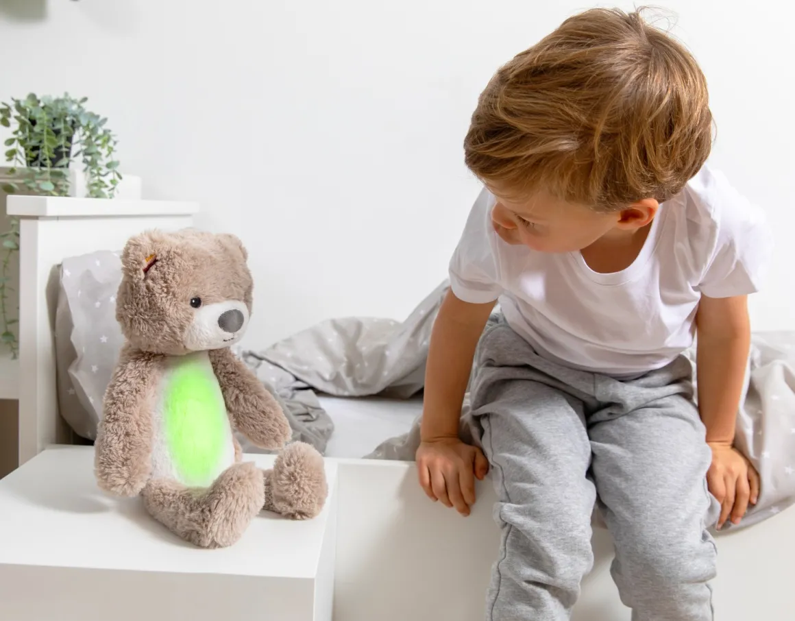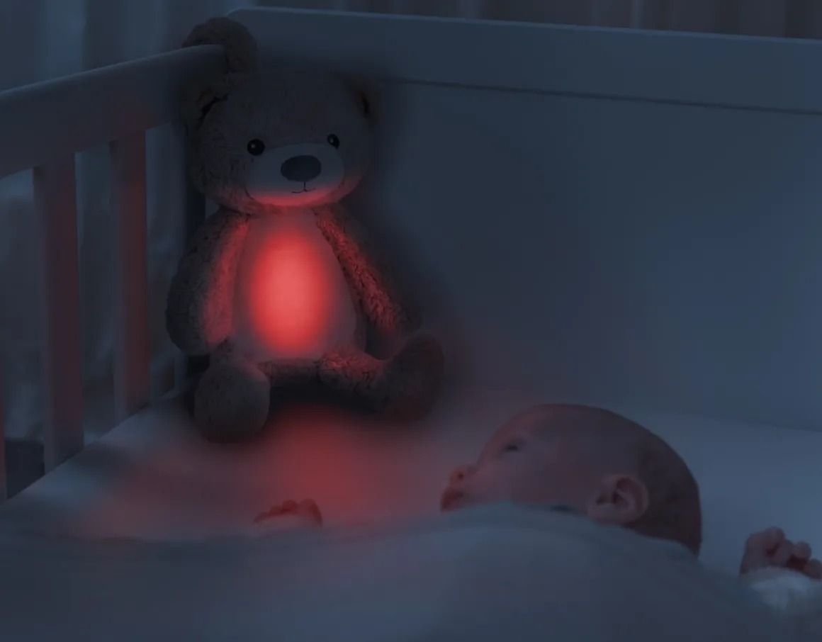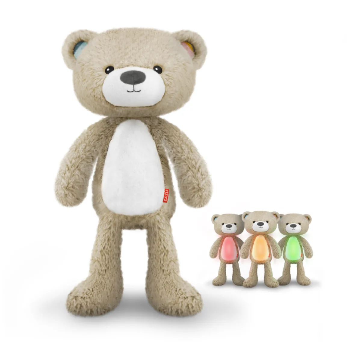 De ZAZU Slaaptrainer Beer Brody is ontworpen om je kleintje te helpen ’s avonds in slaap te vallen en hen gerust te stellen gedurende de nacht. Deze schattige beer biedt niet alleen een rustgevend nachtlampje, maar speelt ook kalmerende liedjes af om je kind te helpen ontspannen voor het slapengaan. Met Brody’s intuïtieve lichtsysteem leert je kind wanneer het tijd is om te slapen en wanneer het veilig is om op te staan. Dit wordt aangeduid door een veranderend kleurenschema: rood voor nacht, oranje voor vroege ochtend en groen voor “OK om op te staan”.