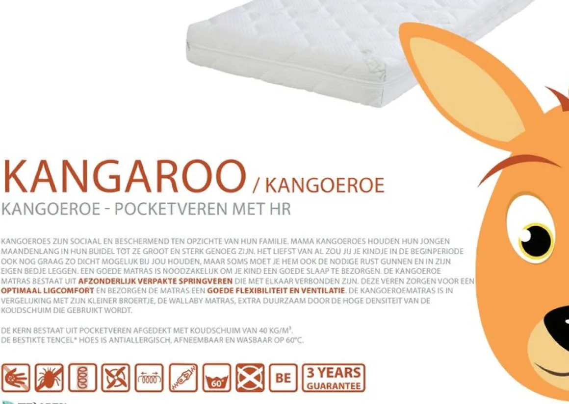 | Model | ABZ Kindermatras 90 x 200 cm Kangoeroe Pocketvering Ventilerend En Vochtregulerend |