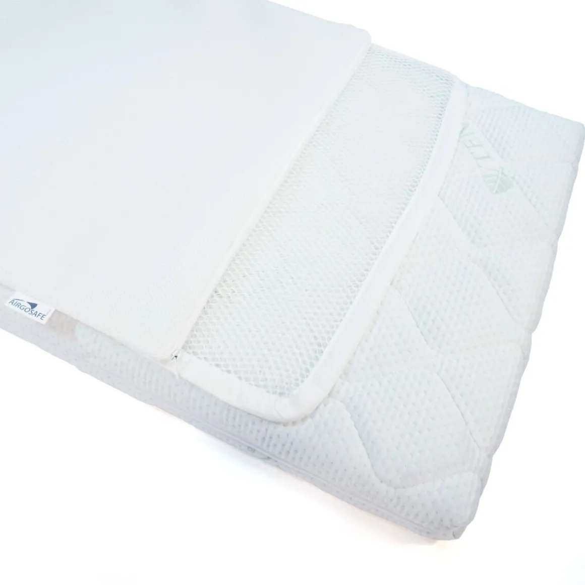 De matrastopper is zeer luchtdoorlatend en zorgt ervoor dat je kindje altijd makkelijk kan blijven doorademen. Ook gaat de topper warmtestuwing tegen en zorgt het ervoor dat je kindje het niet te koud krijgt. De topper is voorzien van een ondoordringbare onderlaag, zodat het matras wordt beschermd bij eventuele ongelukjes. De topper kan in zijn geheel worden gewassen in de wasmachine op 60°C. Met de Airgosafe matrastopper ben je er altijd zeker van dat je kind in een gezonde en hygiënische slaapomgeving zal slapen.