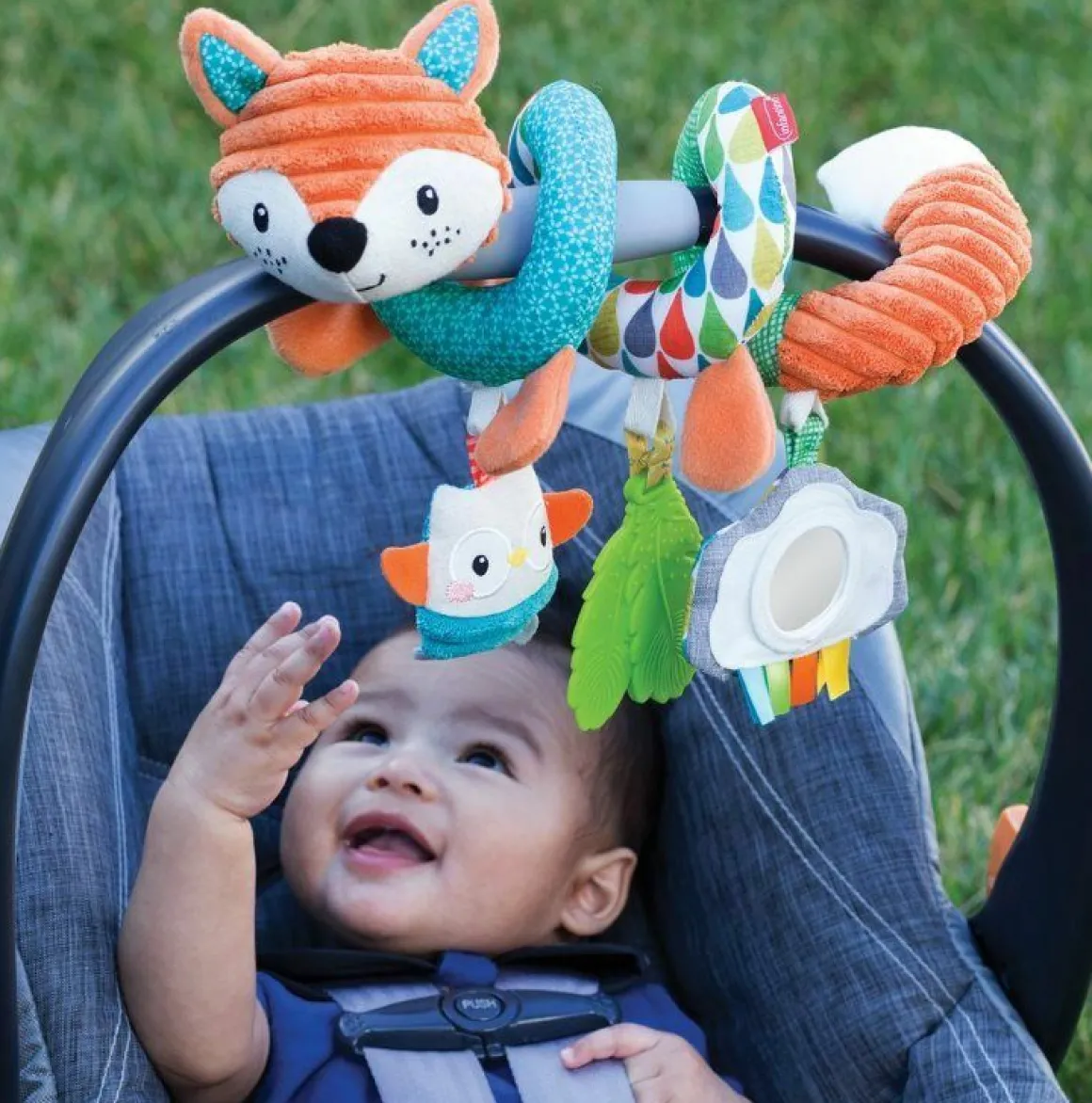 De B-Kids Soft Go-Gaga Spiral Activity vrolijkt de kinderwagen of box op! Het kleurrijke spiraal kan gemakkelijk aan de kinderwagen of box worden bevestigd en bevat veel speeltjes voor je kleintje zoals een rammelaar, bijtring en spiegeltje. Zo wordt op pad gaan met je kleintje nog veel gezelliger!