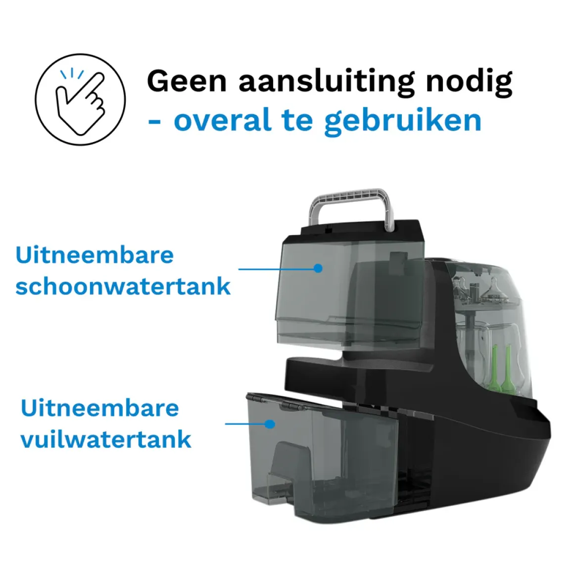 De Baby Brezza Bottle Washer Pro is ontworpen met gemak in gedachten. Er is geen wateraansluiting nodig dankzij de handige verwijderbare schoon- en vuilwaterreservoirs. Het apparaat is BPA-vrij en wordt geleverd met een garantie van 24 maanden. Om watervlekken te voorkomen, kantel je de producten in de machine om restwater weg te laten lopen. Als je in een gebied met hard water woont, gebruik dan een waterontharder of gedestilleerd water om kalkaanslag te vermijden.
