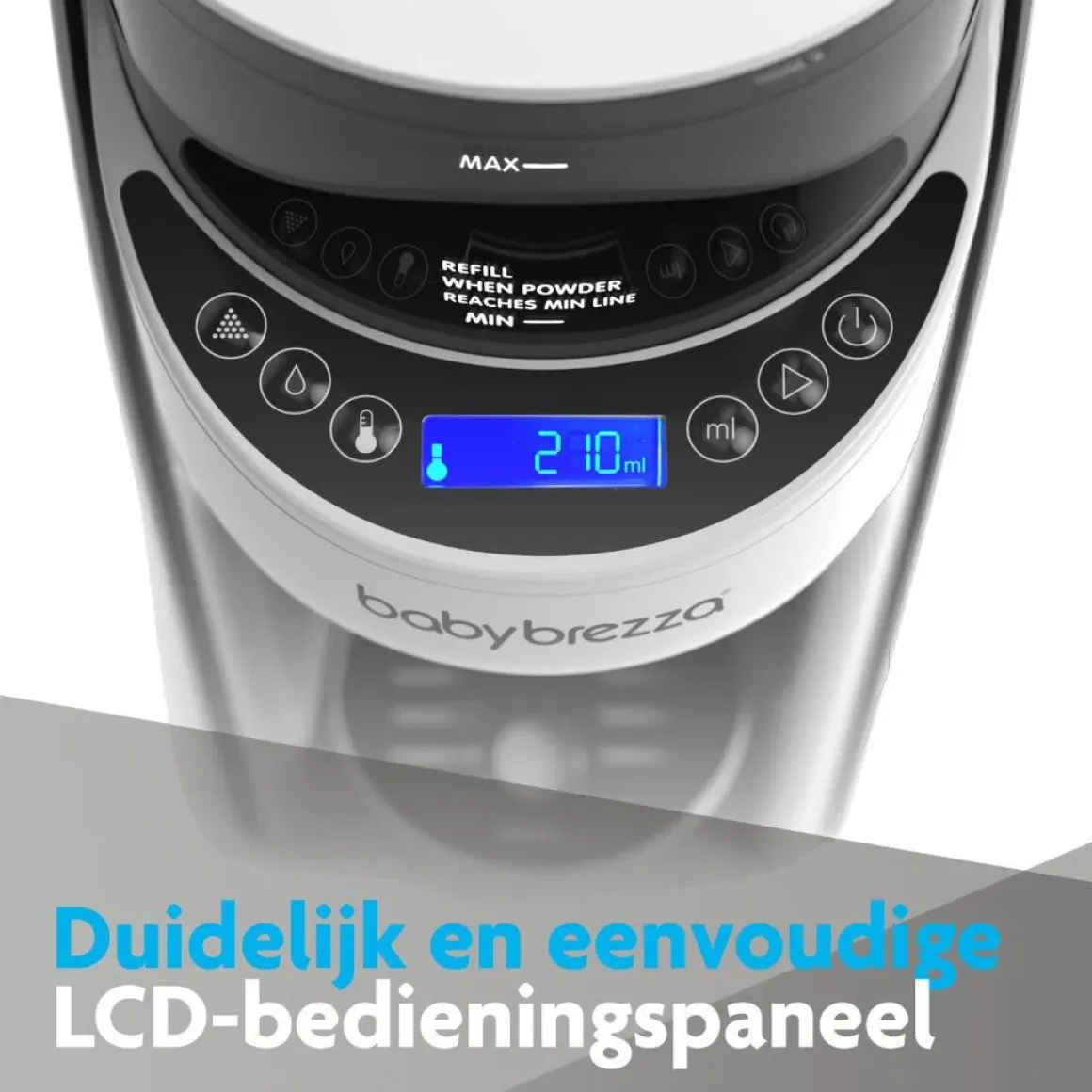 Met de digitale bediening en het LCD-bedieningspaneel kan je kiezen uit verschillende soorten merkvoedingen, flesgroottes en temperaturen (3 temperatuurinstellingen). In de luchtdichte poederopslag kan genoeg melkpoeder worden bewaard voor ongeveer 20 flessen. Het waterreservoir is gemakkelijk te vullen.