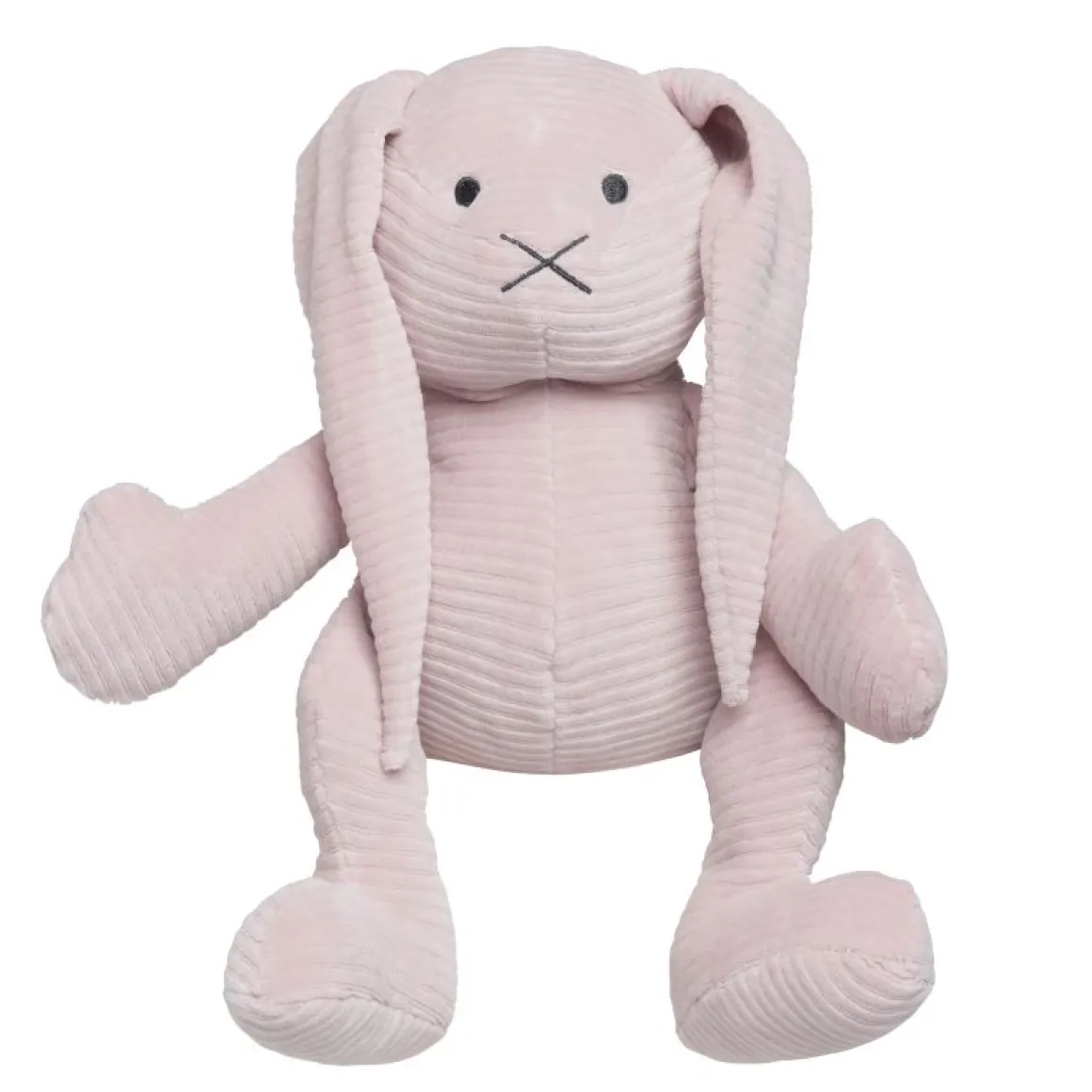 Het knuffelkonijn is gemaakt van ribcorduroy, wat een stijlvolle en luxueuze uitstraling heeft. De lange oren maken de knuffel heel leuk om mee te spelen. Ook kan het konijn worden neergezet als decoratie in de babykamer.