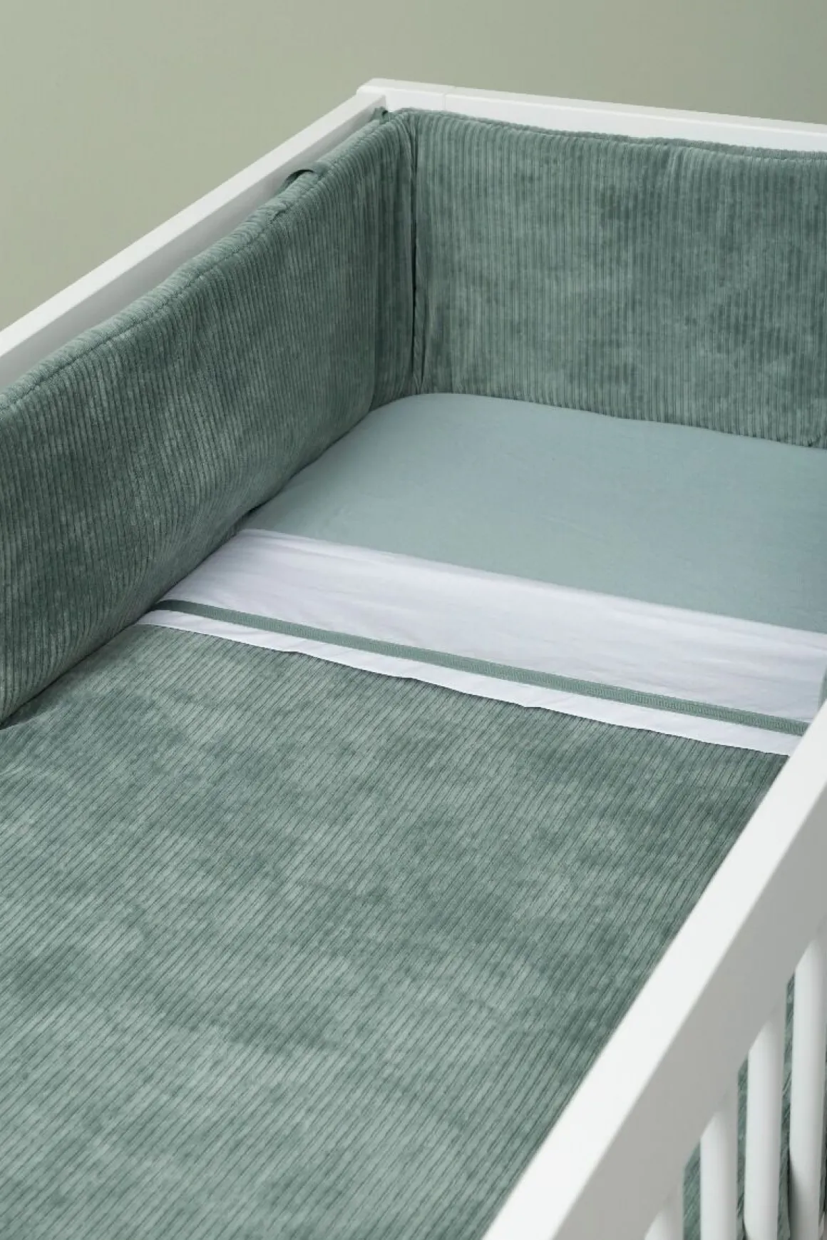 Deze ledikantdeken met hippe corduroy look in de nieuwe kleur zeegroen voelt zacht en comfortabel aan.