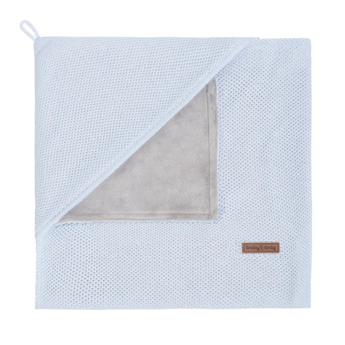 De Baby’s Only Wikkeldeken soft Classic poederblauw is wasbaar, vormvast en kleurecht. Door de uitsparing is de wikkeldeken geschikt voor een Maxi-Cosi of ander autostoeltje. De wikkeldeken is 75 x 75 cm.