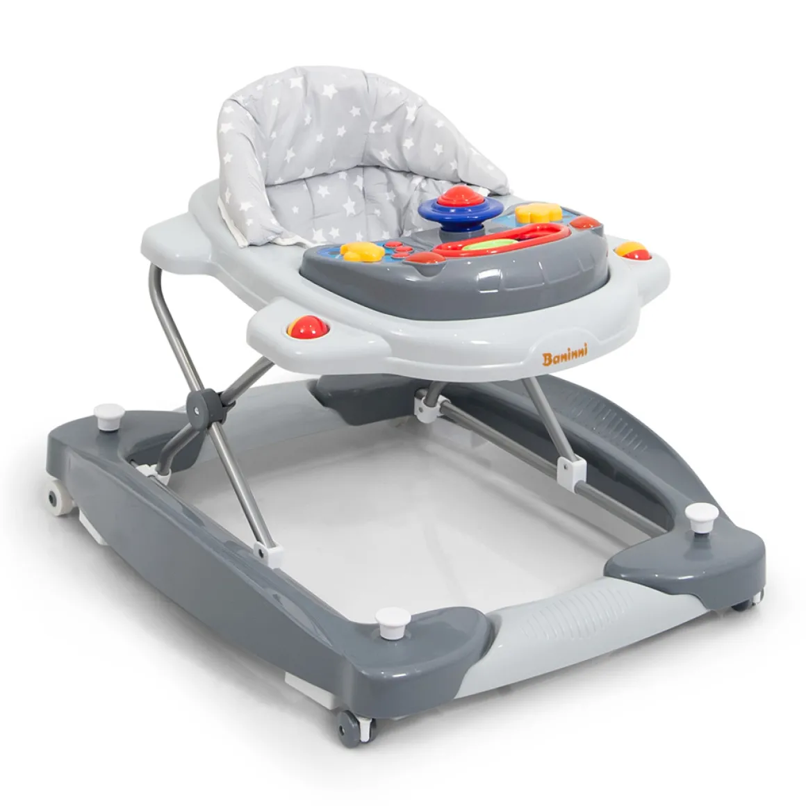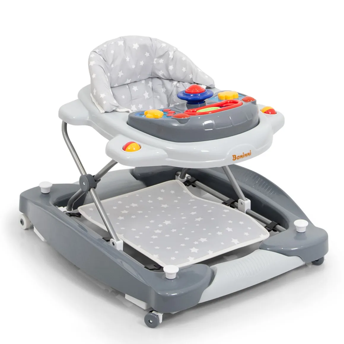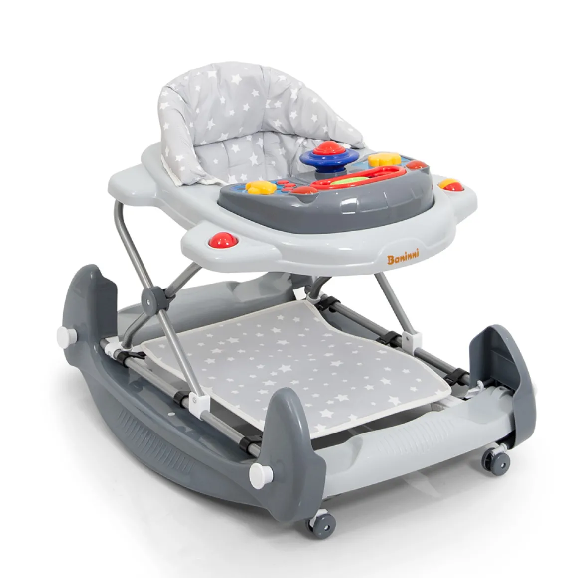 Met de Baninni Loopstoel Classic Star zal je kindje zich urenlang vermaken! De eerste stapjes kunnen worden geoefend, er kan worden gespeeld met het speelblad en hij kan worden gebruikt als schommel. De loopstoel is geschikt voor kinderen vanaf 6 maanden tot een maximaal gewicht van 12 kg.