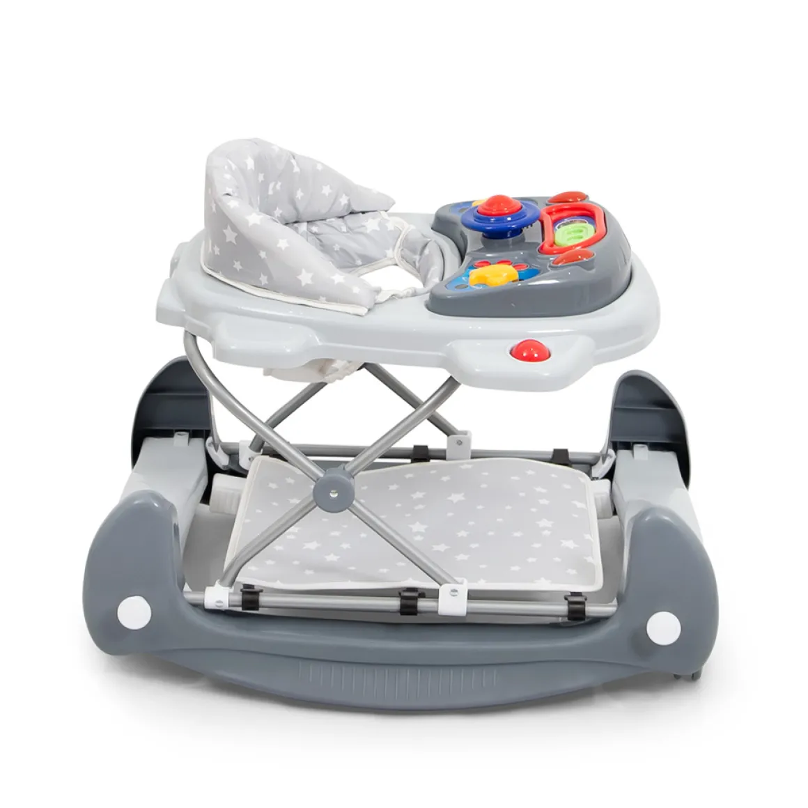 De loopstoel kan ook als schommelstoeltje worden gebruikt doordat de wieltjes ingeklapt kunnen worden. Wanneer je kindje even niet speelt met de loopstoel kan hij gemakkelijk worden opgevouwen om ruimte te besparen. Het loopstoeltje kan eenvoudig worden gereinigd met een vochtige doek en de zitting kan met de hand worden gewassen.