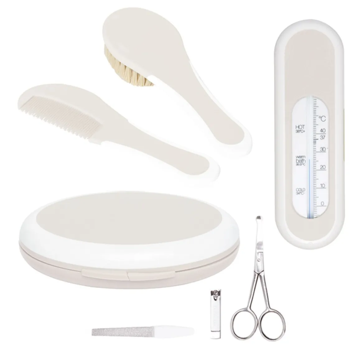De Bébé-Jou Geschenkset bevat drie onderdelen; de kapset (een borstel en een kam), een badthermometer en een manicureset. De kapset bestaande uit een kam en een borstel, is speciaal ontworpen voor baby’s en is gemaakt van zachte, natuurlijke materialen. De badthermometer is ontworpen om ervoor te zorgen dat het badwater altijd de perfecte temperatuur heeft voor je kleintje. De manicureset bevat een nagelschaartje, een nagelknippertje en een nagelvijltje. Elk van deze hulpmiddelen is zorgvuldig ontworpen en veilig in gebruik voor baby’s.