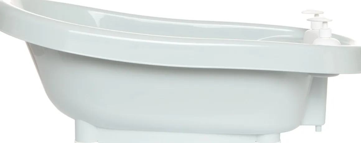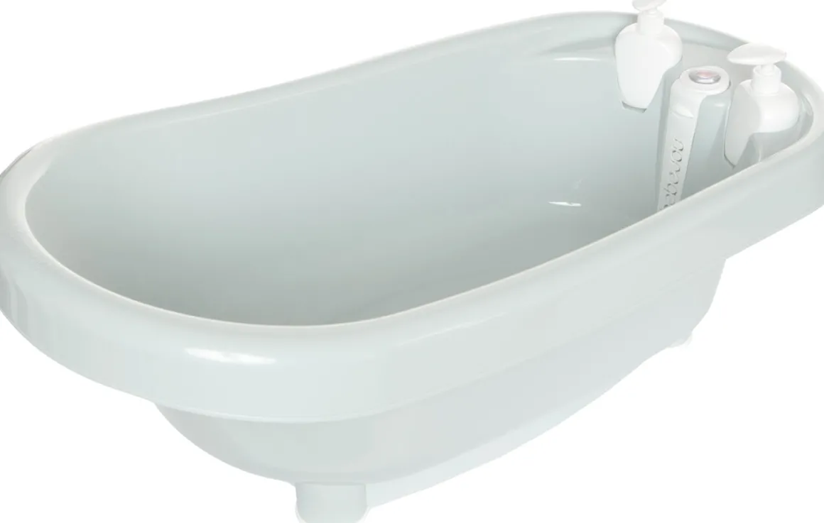 - Luxe Bebe Jou thermobad met een geïntegreerde badthermometer en twee dispensers voor shampoo en zeep