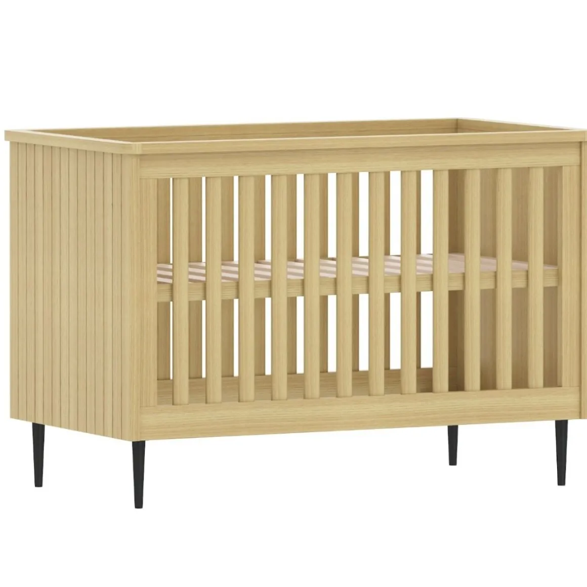 In het Born Lucky Baby Bed Praag kan je kindje comfortabel en veilig slapen. Het baby bedje heeft een natuurlijke uitstraling en is afgewerkt met stoere details. De zwarte pootjes onder het bedje maken het helemaal af!