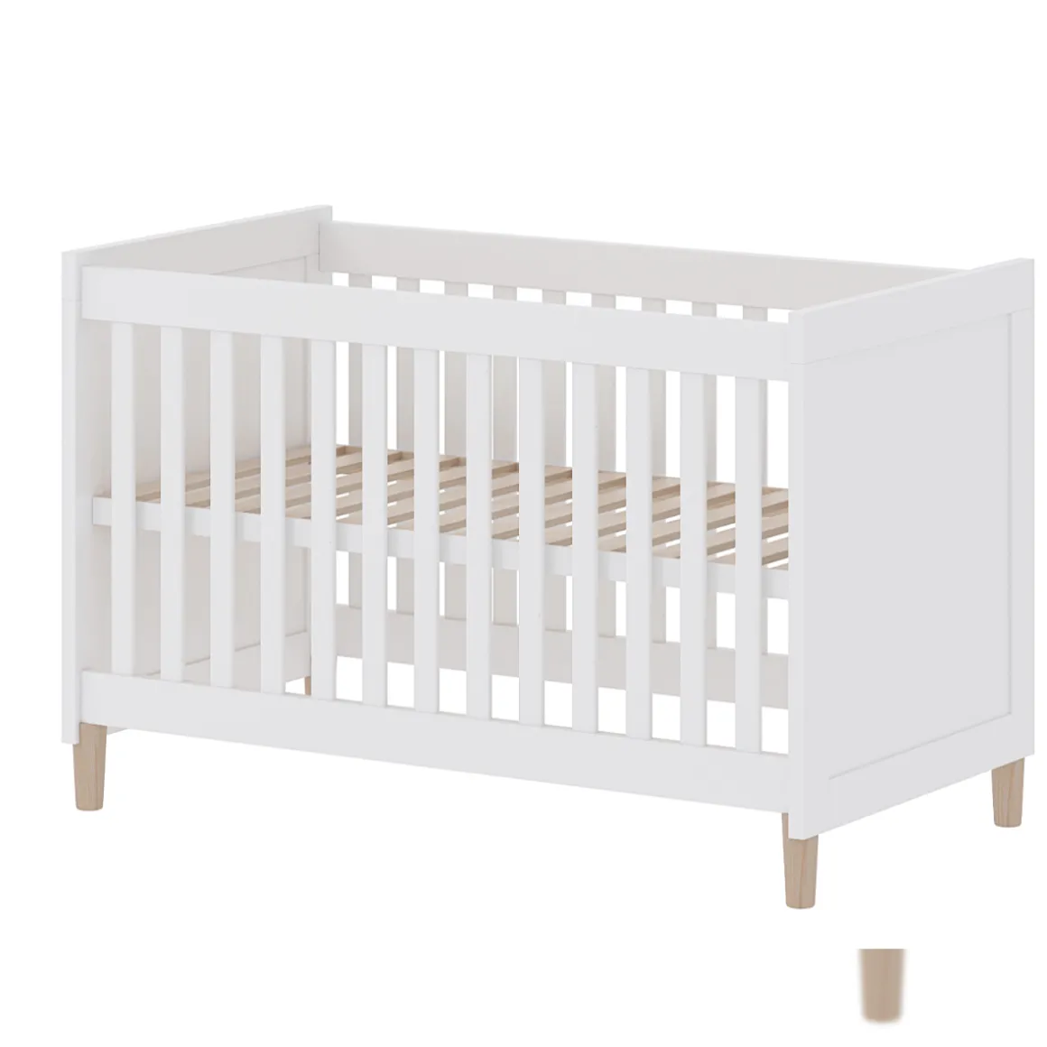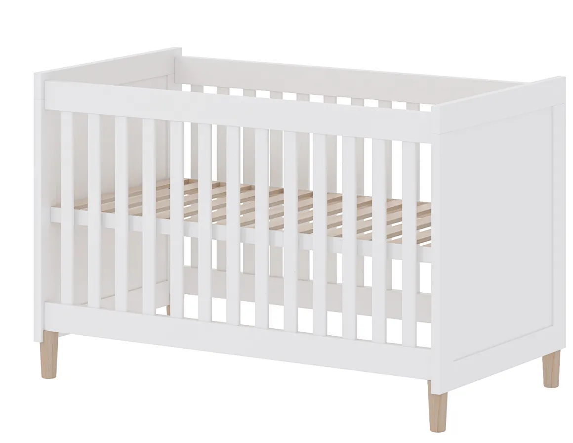 Een extra leuk detail is dat dit baby ledikant is afgewerkt met naturel houten pootjes. Daarnaast is de bodem van dit ledikant in hoogte verstelbaar.