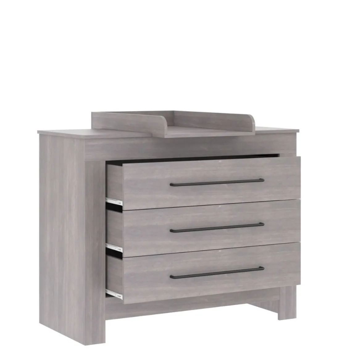 De commode biedt veel opbergruimte in de 3 ruime lades. Op het commodeblad inclusief verschoonopzet is voldoende ruimte voor het verschonen van je kindje. Dankzij de verschoonopzet kan het aankleedkussen niet verschuiven.