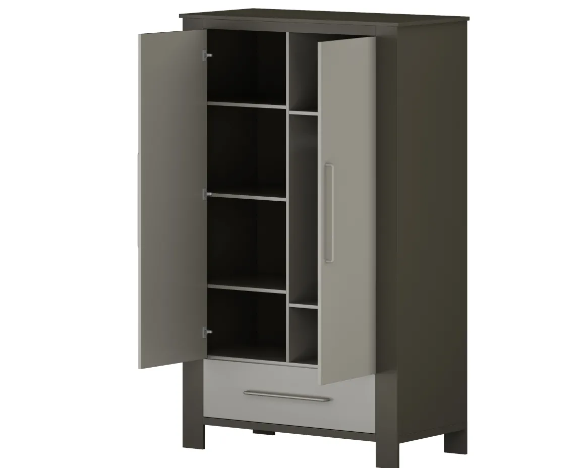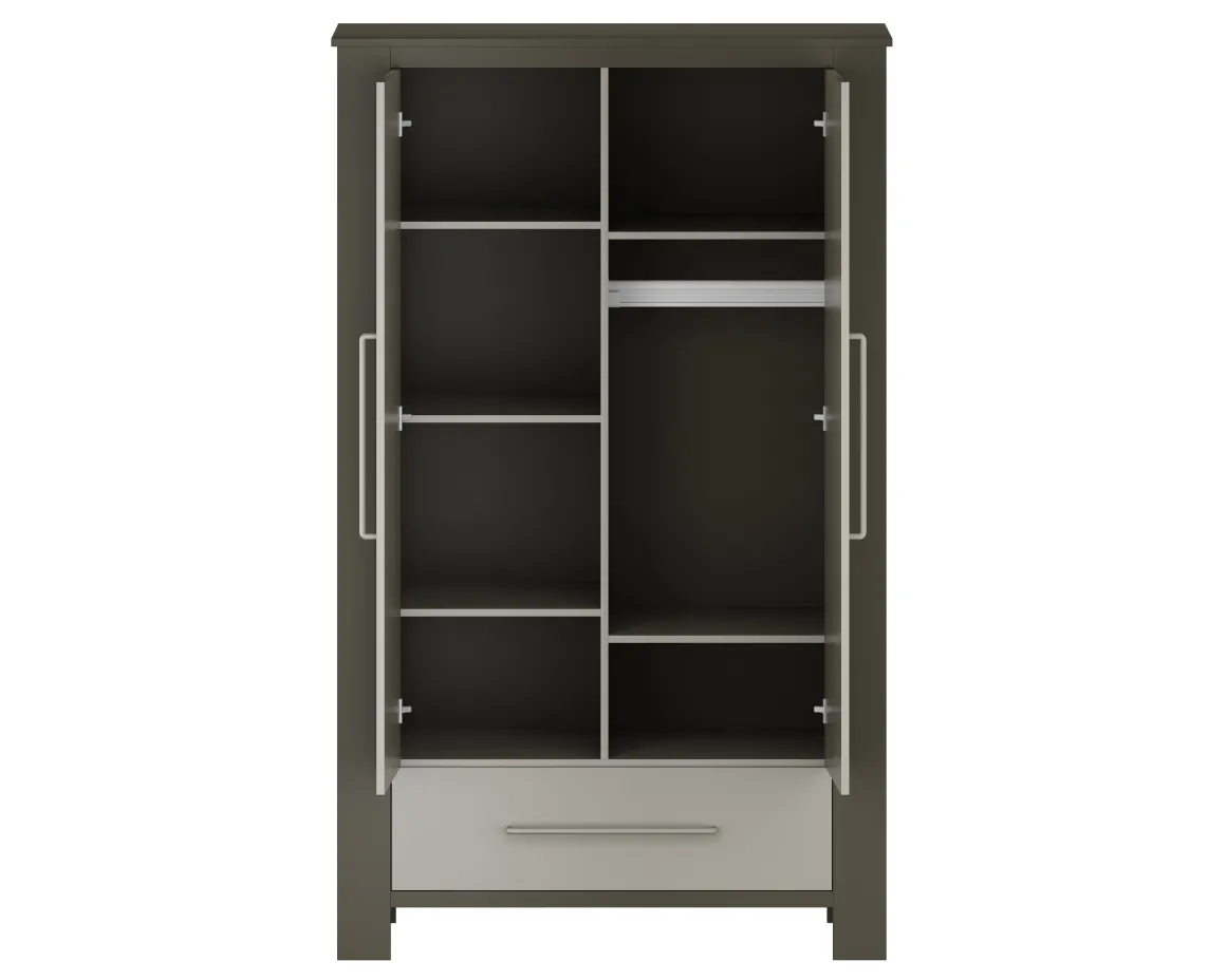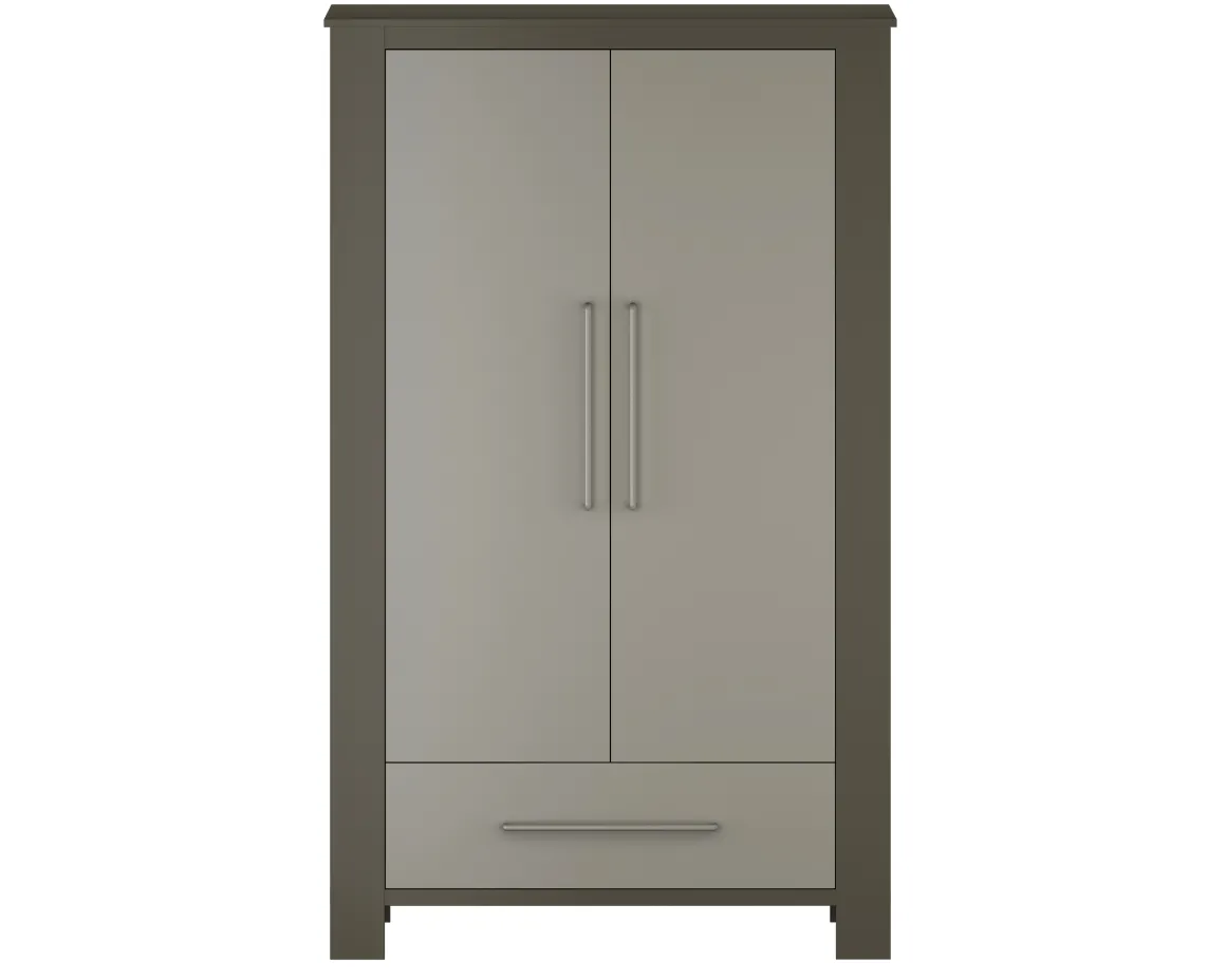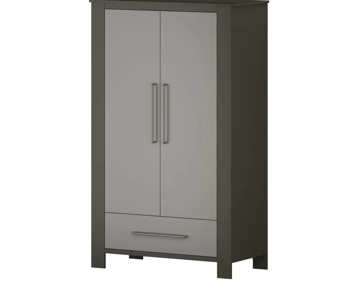 De kledingkast heeft een ruim hang- en leggedeelte en een opberglade.