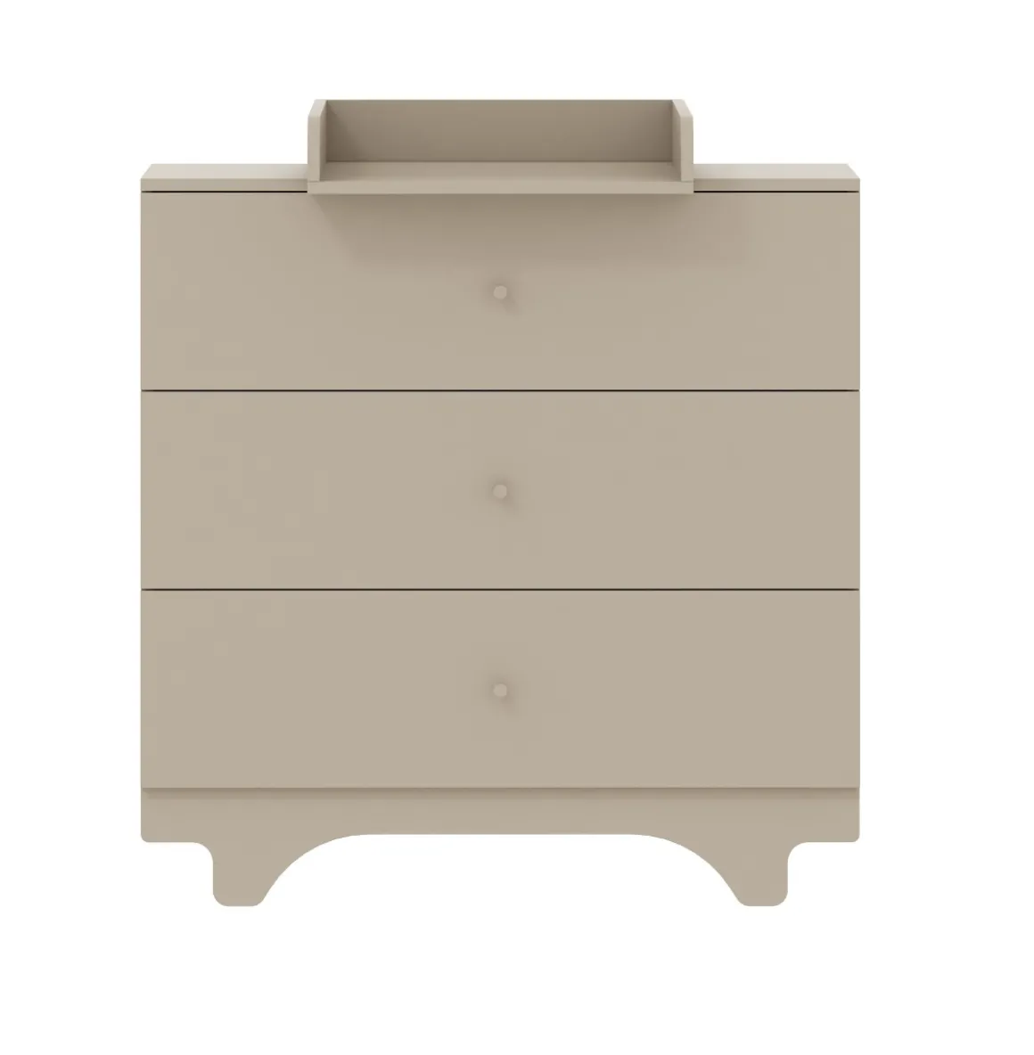 De beige commode heeft een afmeting van 90 x 92.5 x 50 cm (HxBxD). Op het commodeblad met verschoonopzet heb je voldoende ruimte voor het verschonen van je kindje. In de 3 lades van de commode heb je voldoende ruimte voor het overzichtelijk opbergen van alle babyspuletjes, zoals luiers, kledig, beddengoed en andere accessoires.