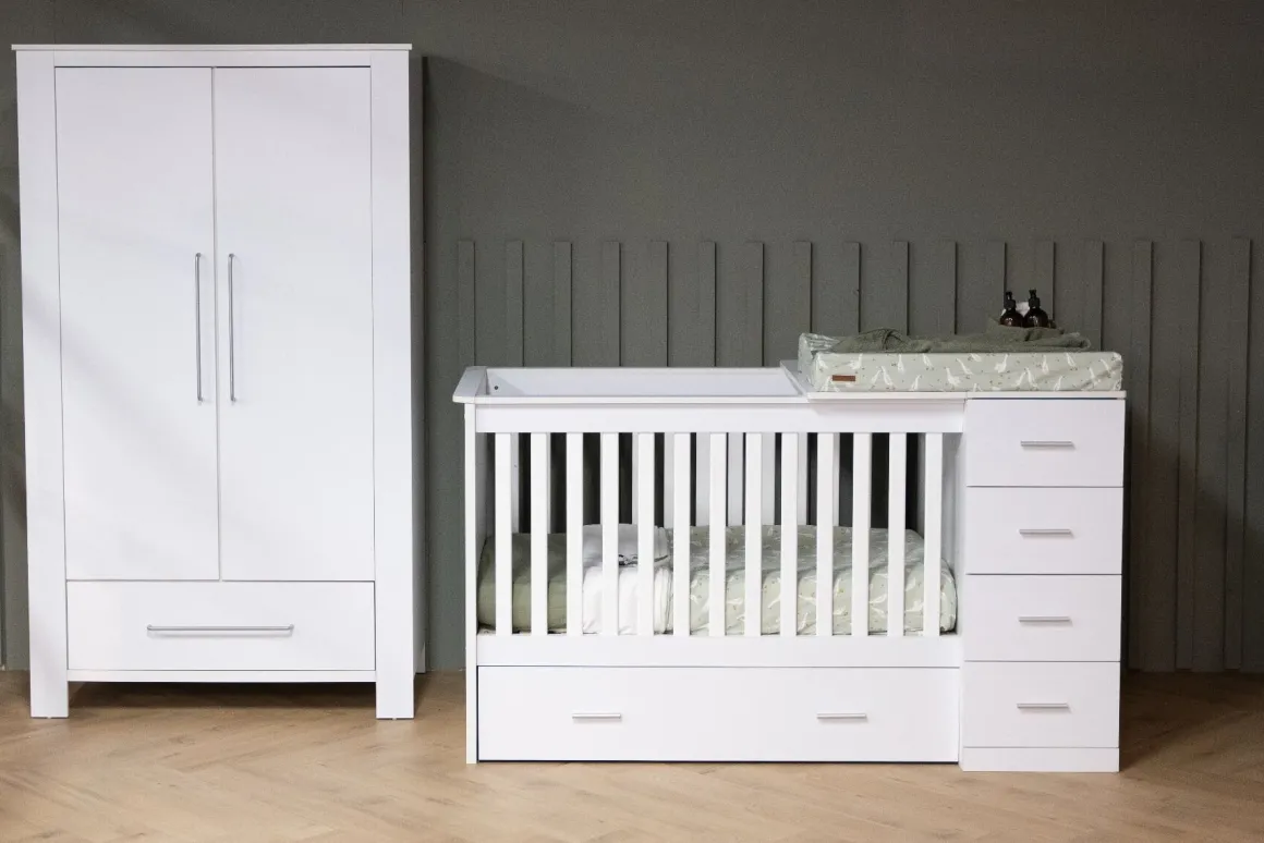 - Baby bed, commode en kledingkast in één met extra kledingkast