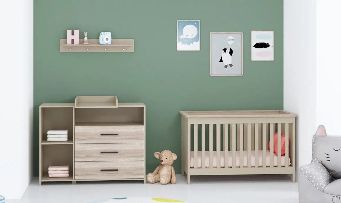 De Born Lucky Babykamer Noah Clay 2 Delig is een prachtige en stijlvolle neutrale babykamer! De set bestaat uit een baby bedje en een commode: de essentials die je nodig hebt voor een fijne slaapplek voor je kindje. De unieke clay kleur van de meubels kan perfect worden gecombineerd met accessoires in andere kleuren en stijlen. Het is een goed uitgangspunt voor het creëren van een fijne, rustgevende babykamer!