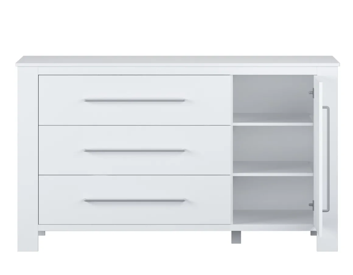 De Born Lucky Noël Commode XL biedt volop opbergruimte voor alle babybenodigdheden. Met drie grote lades heb je voldoende ruimte om kleertjes, luiers en verzorgingsproducten netjes op te bergen. De extra grote zilveren handgrepen maken het openen en sluiten van de lades eenvoudig en geven de commode een luxe uitstraling.
