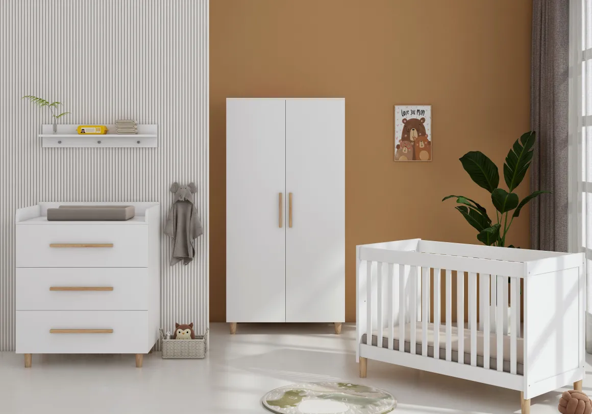 Gemaakt van witgelakte meubelplaten met deco fineer, vertoont de babykamer subtiele kleurnuances en naden, wat bijdraagt aan het verfijnde design. Wat deze babykamer nog aantrekkelijker maakt, is de scherpe prijs. De Stockholm babykamer is niet alleen prachtig, maar ook uitzonderlijk stevig, waardoor het een waardevolle investering is voor ouders.
