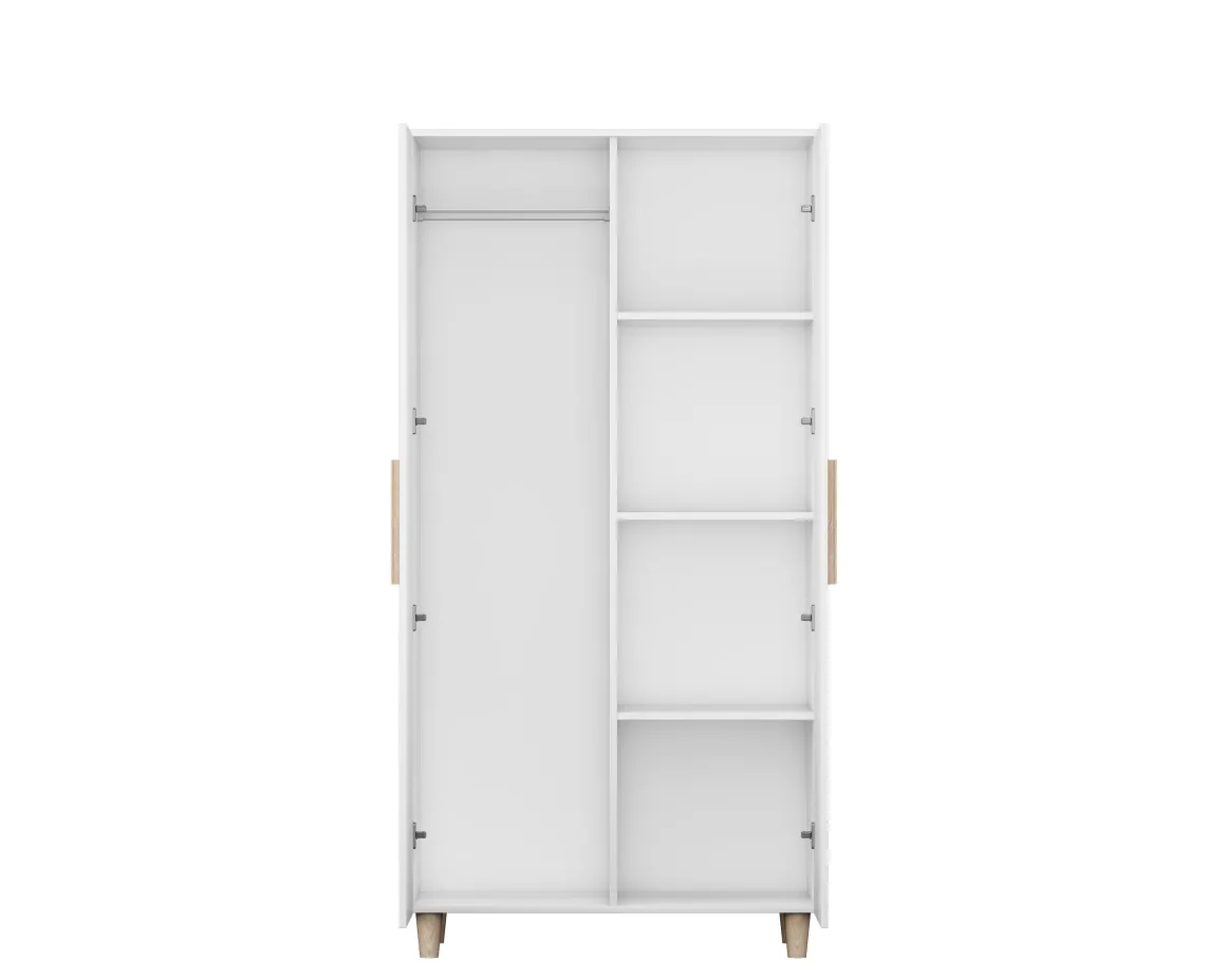 In de ruime kledingkast kun je de garderobe van je kleintje netjes organiseren. Hang en leg babykleertjes op achter de twee kastdeuren. De afmetingen zijn 180 x 90 x 50 cm.