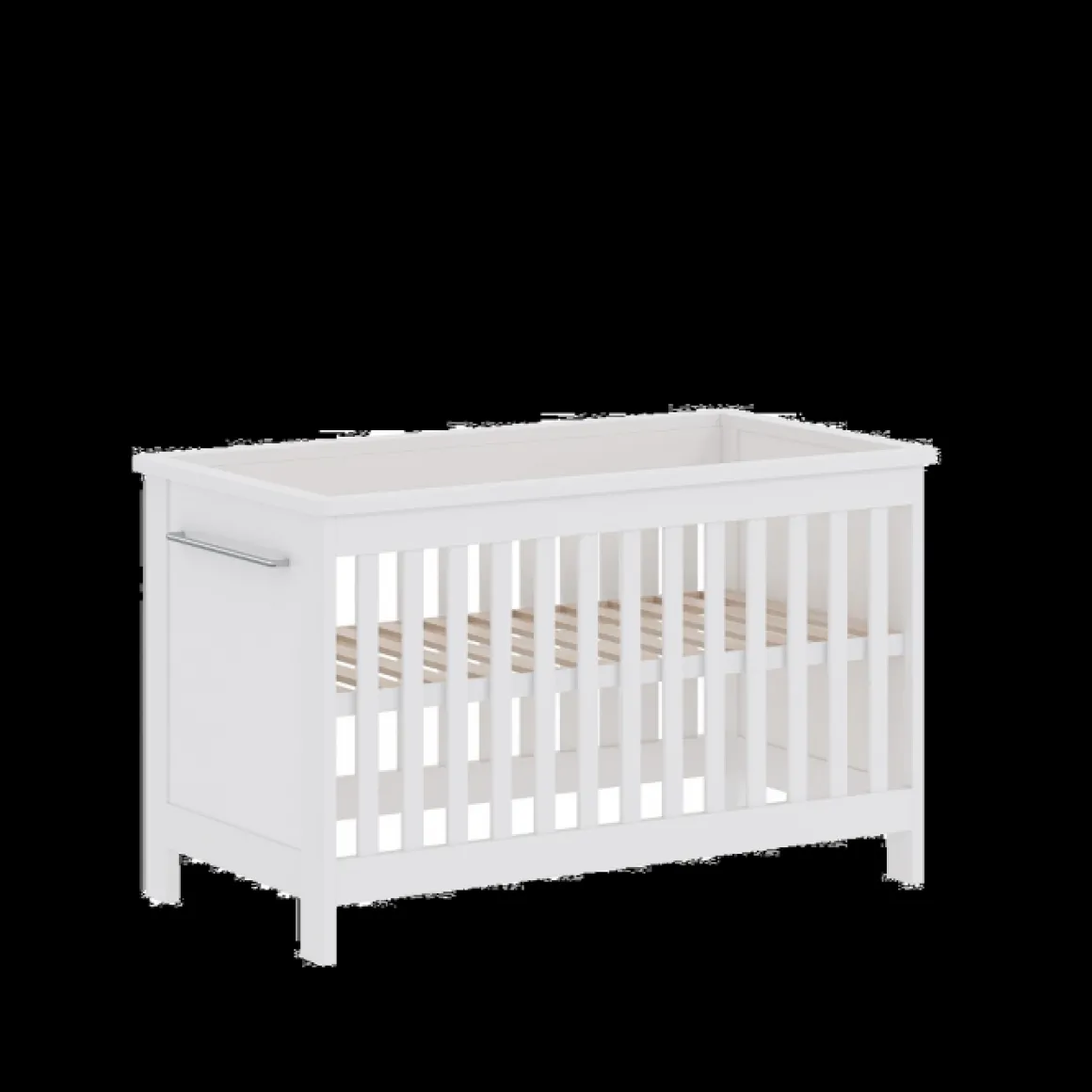 De 2-delige babykamer Texas, van Cabino, is een prachtige witte babykamer welke een strakke uitstraling heeft. Door zijn witte kleur is de babykamer tijdloos en past deze in iedere inrichting. Extra leuk detail zijn de brede grijze handgrepen op de commode. Hier kan je dan bijvoorbeeld het muziekdoosje van je kindje aan ophangen. En deze handgrepen zijn niet alleen stijlvol, ze zijn ook nog erg praktisch. Het ruime opbergvak onder de commode zorgt voor extra bergruimte.Â