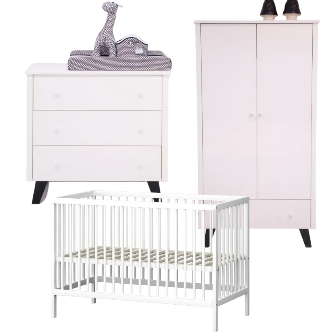 De Born Lucky Babykamer Zara Zwart Wit Met Baby Bed Joep is een droom die uitkomt voor aanstaande ouders die op zoek zijn naar de perfecte inrichting voor de kamer van hun kleintje. Deze complete 3-delige babykamer bestaat uit een commode, een kast en een babybedje, alles wat je nodig hebt voor de perfecte start van het leven van je baby.