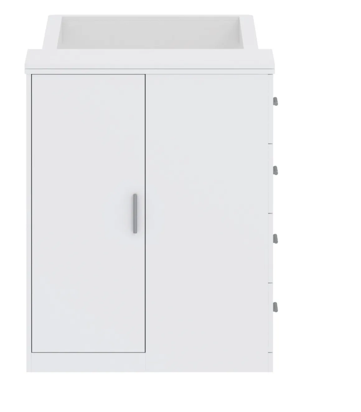 Op het uitklapbare commodeblad op het kastje heb je voldoende ruimte voor het verschonen, verzorgen en aankleden van het kindje.