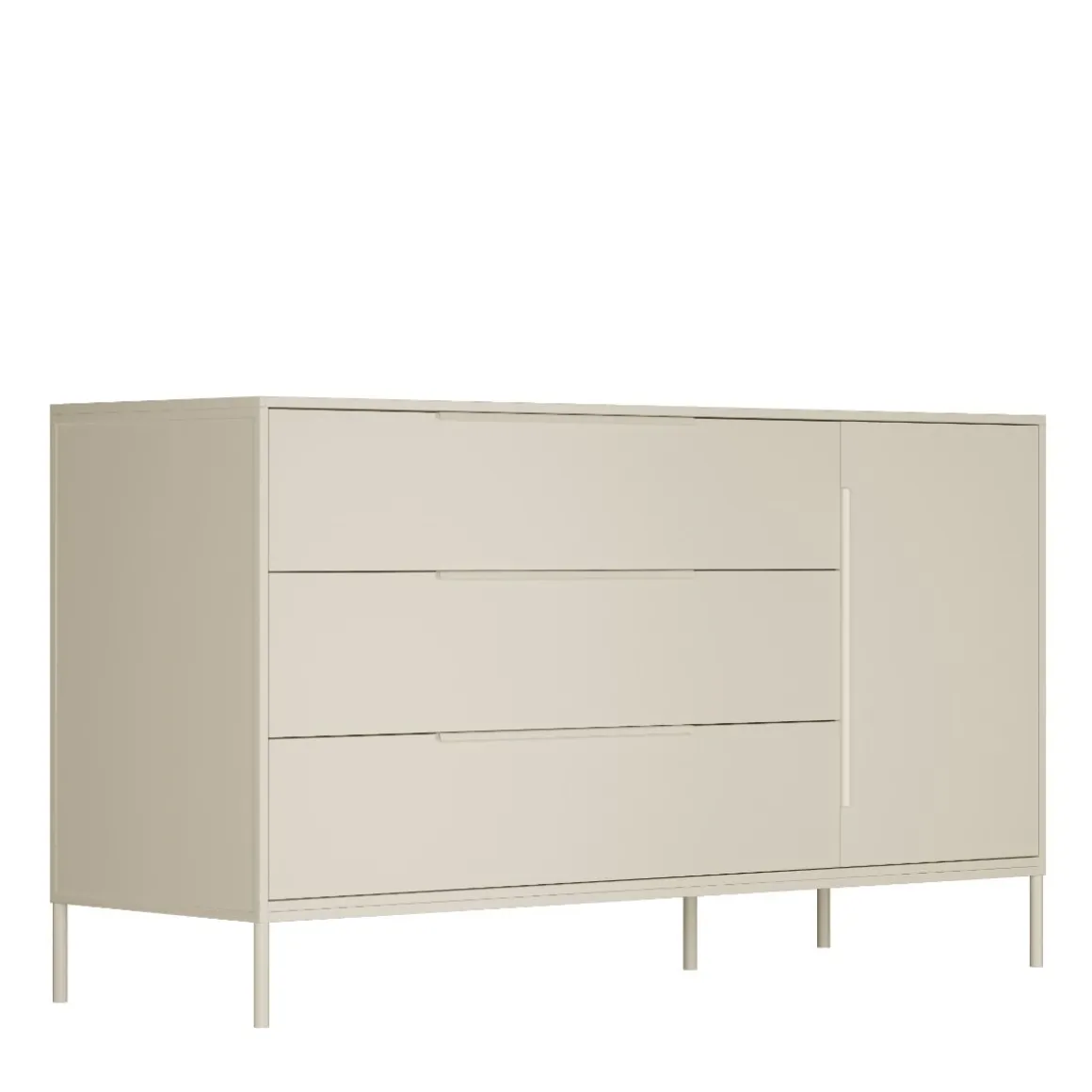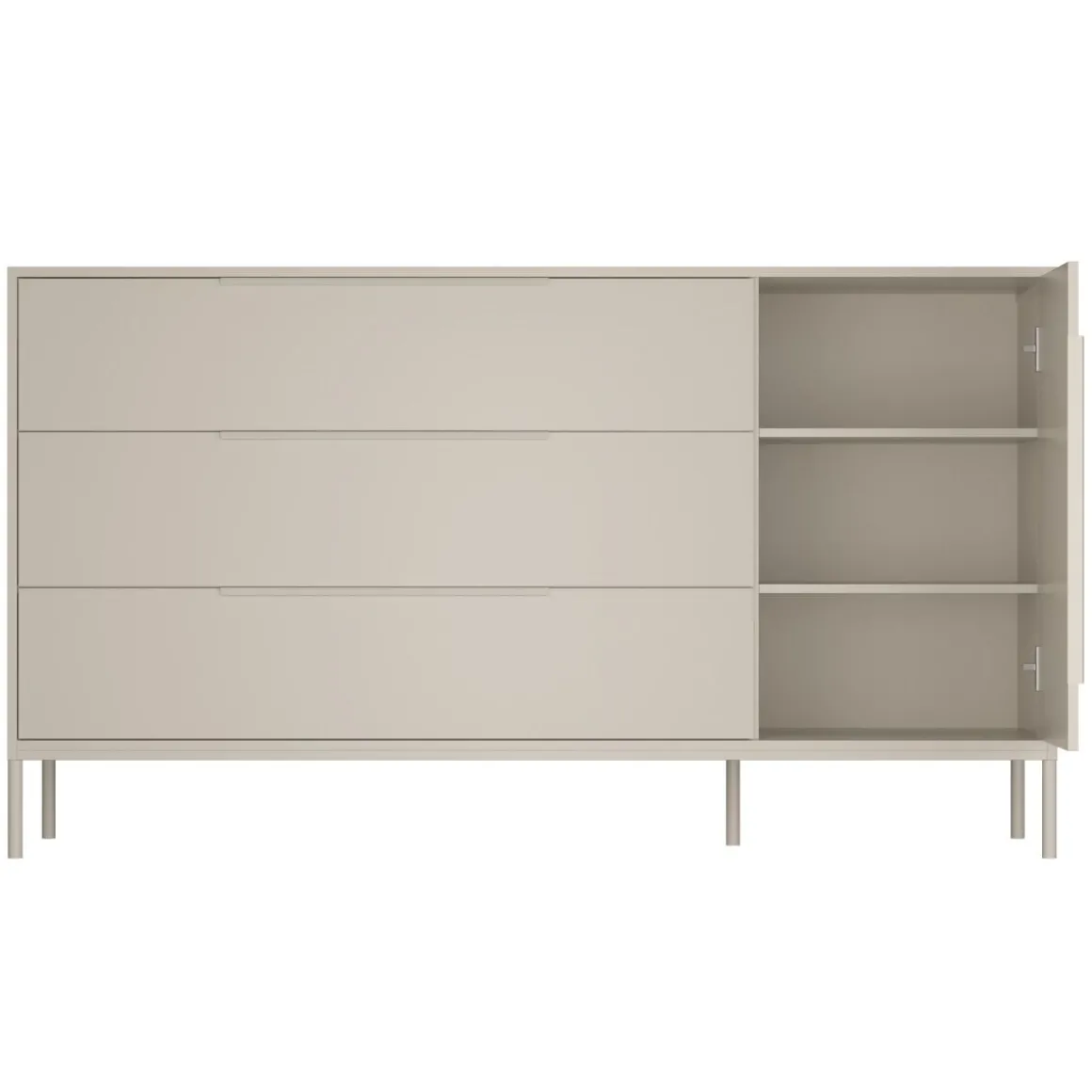 De clay kleur van de commode is stijlvol, trendy en elegant. De hoge metalen pootjes onder de commode zorgen ervoor dat het meubel ruimtelijk oogt. De neutrale kleur past bij iedere interieurstijl en kan worden gecombineerd met accessoires in jouw favoriete kleur.Â