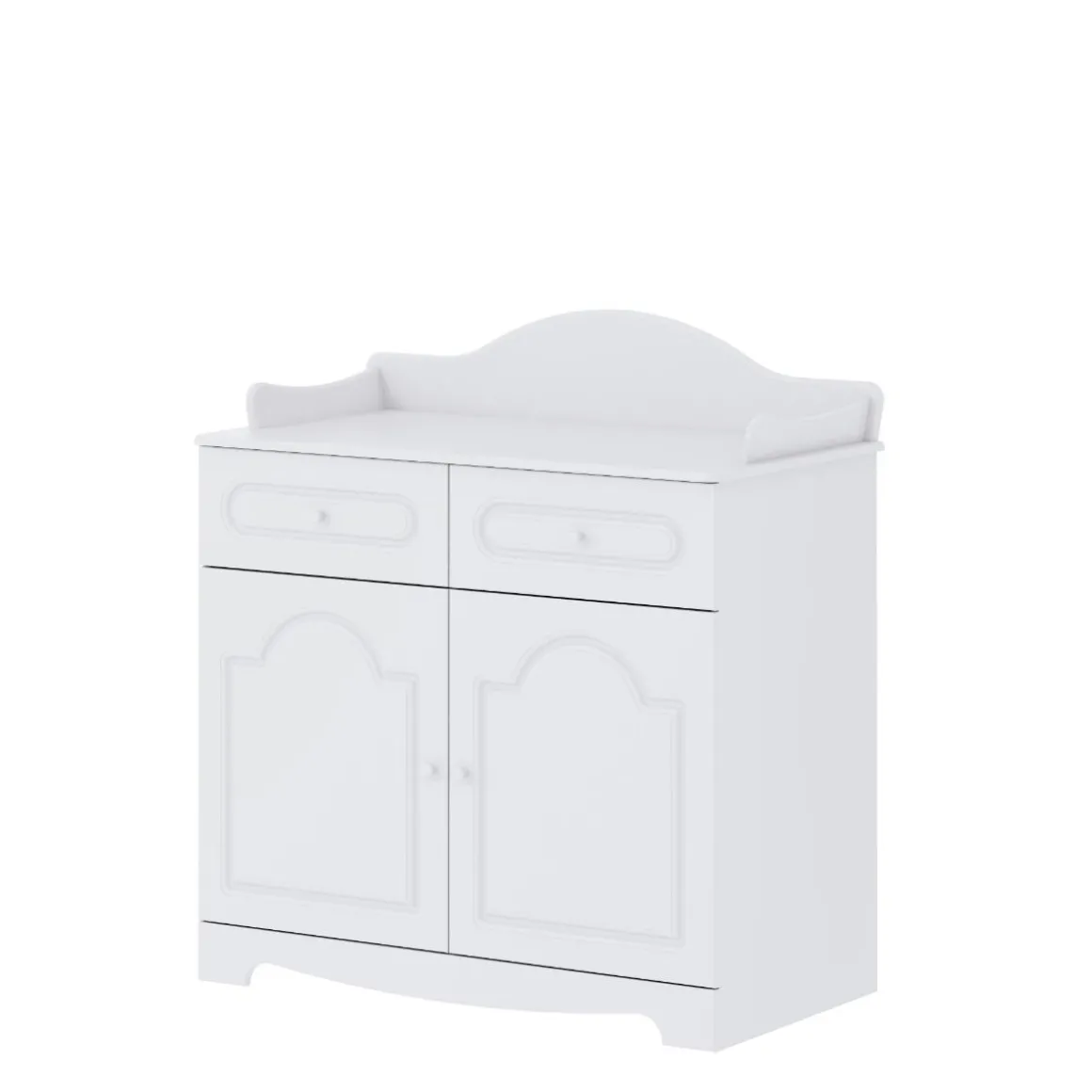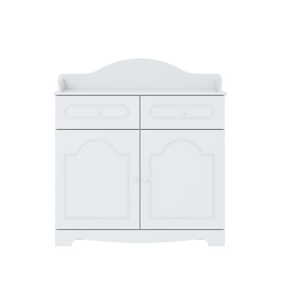 De commode is niet alleen mooi, maar ook praktisch in het dagelijks gebruik. Met twee ruime opbergladen en twee kastdeurtjes biedt ze voldoende ruimte om kleertjes, luiers en verzorgingsproducten netjes op te bergen. Zo heb je alles binnen handbereik tijdens het verschonen. De opstaande rand op het werkblad zorgt bovendien voor extra veiligheid, zodat je je kindje met een gerust hart kunt verzorgen.