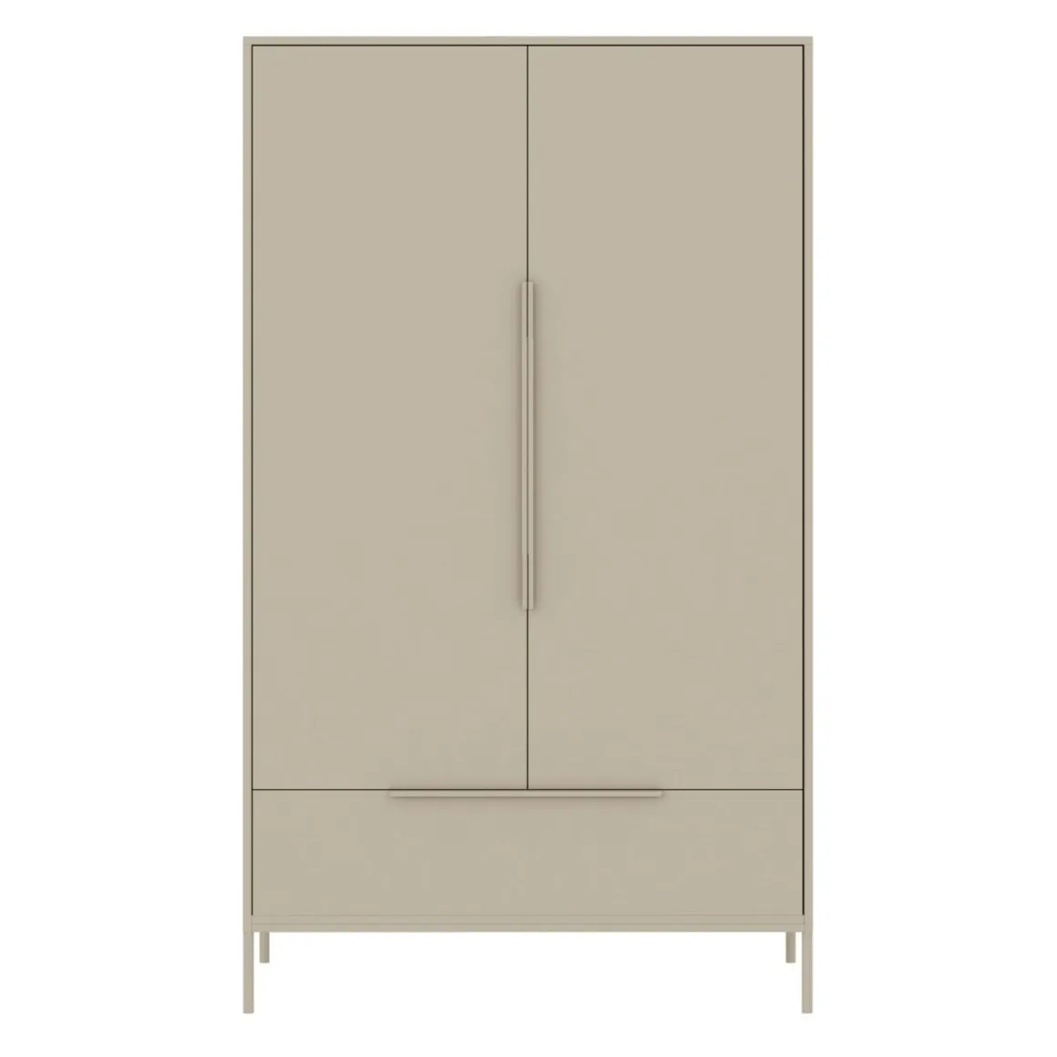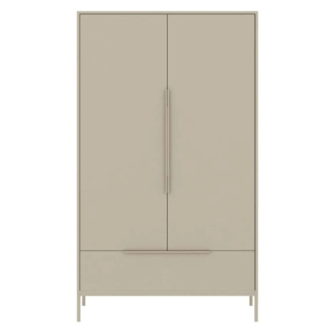 De Born Lucky Kledingkast Belmond Clay is een ruime kledingkast met veel opbergruimte. De kledingkast heeft een neutrale kleur en heeft daardoor een trendy uiterlijk! Achter de twee kastdeuren bevindt zich een ruim hang- en leggedeelte. Hang de favoriete kledingsetjes van je kindje netjes op zodat je ze altijd binnen handbereik hebt! Onderin de kast bevindt zich een ruime opberglade. Dit is ideaal voor het opbergen van losse spulletjes. Doordat de kledingkast op hoge pootjes staat heeft het meubel een ruimtelijke uitstraling.