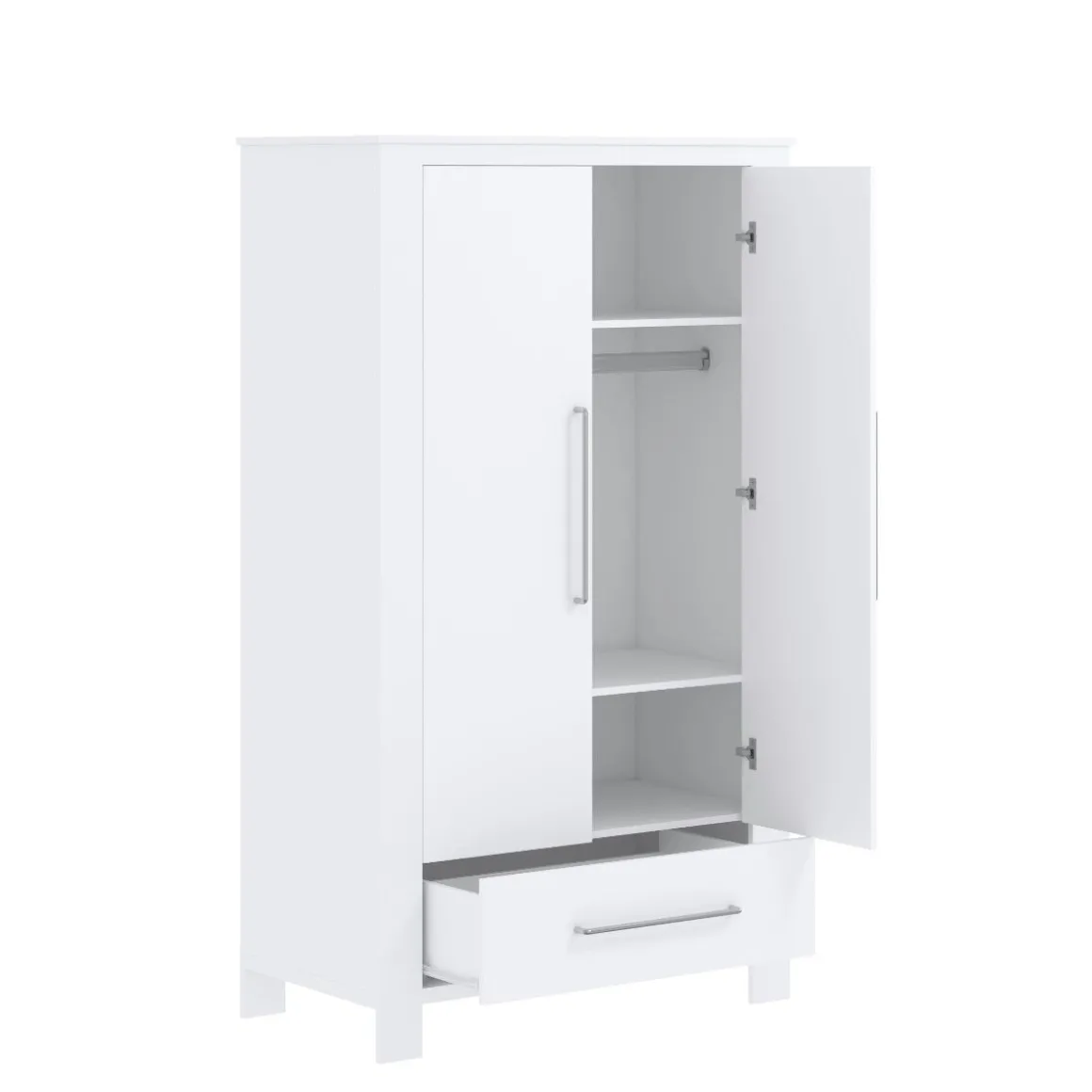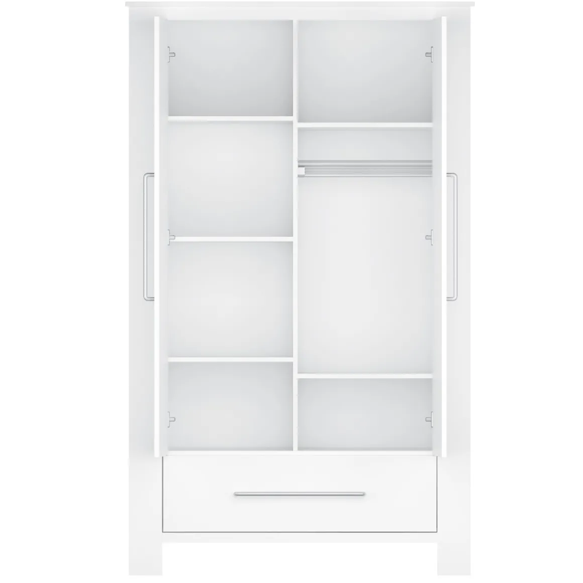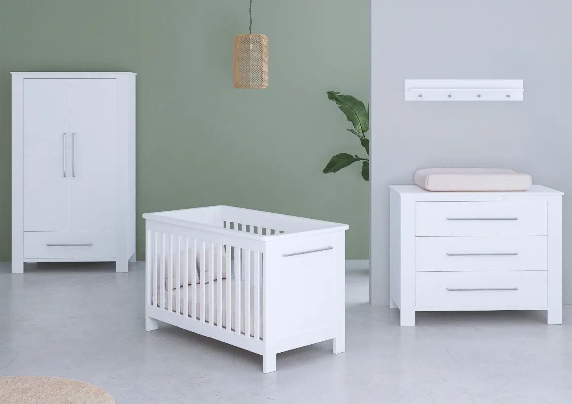 Ben je op zoek naasr een stijlvolle en praktische kledingkast voor de babykamer? De Born Lucky Kledingkast Noël Wit is de perfecte keuze voor aanstaande ouders die functionaliteit en een tijdloos design willen combineren. De grote handgrepen geven de kledingkast niet alleen een stijlvolle look, maar maken het openen van de deuren en de lade ook eenvoudig en comfortabel.
