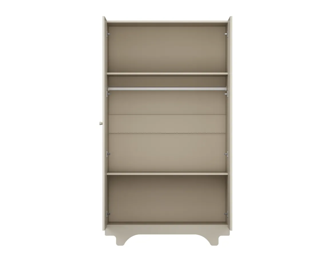 De Born Lucky Kledingkast Rome Clay is stijlvol en heeft een prachtige neutrale kleur. In de 2-deurs kledingkast kan alle kleding van je kindje netjes worden opgeborgen. Achter de kastdeuren bevindt zich een ruim hang- en leggedeelte. Naast babykleertjes zal er voldoende opbergruimte zijn voor wat andere spulletjes!
