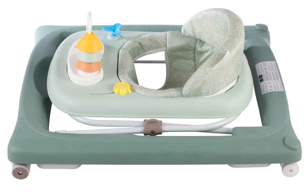 De loopstoel is voorzien van een vrolijk speelblad met leuke activiteiten die het gehoor, zicht en de fijne motoriek stimuleren. Door de kleurrijke knoppen en geluidjes blijft je kindje nieuwsgierig en betrokken. Bovendien kan het speelblad vaak worden verwijderd, zodat de loopstoel ook gebruikt kan worden als eetstoeltje of voor rustige momenten.