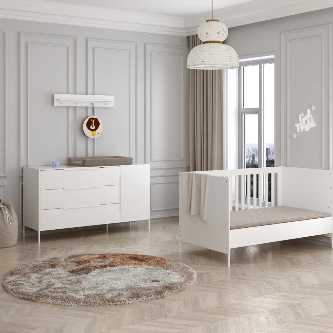 Ontdek de perfecte metgezel voor elke fase van je kleintje met de Born Lucky Meegroei Babykamer Santiago Wit XL 2 Delig. De babykamer groeit mee met je kindje vanaf de geboorte tot een leeftijd van 5 jaar. Een meegroei babykamer is een duurzame investering voor in de toekomst!Â