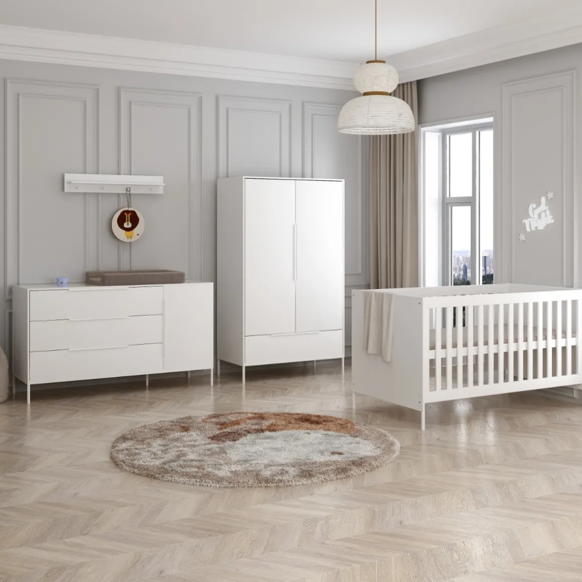 Ontdek de perfecte metgezel voor elke fase van je kleintje met de Born Lucky Meegroei Babykamer Santiago Wit XL 3 Delig. De babykamer groeit mee met je kindje vanaf de geboorte tot een leeftijd van 5 jaar. Een meegroei babykamer is een duurzame investering voor in de toekomst!Â